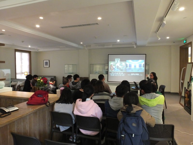 娜仁花老师将讲座的名字定为“作品的秘密”,意在用生动形象的语言为我们揭开世界绘画艺术的神秘面纱,打开一扇通往艺术殿堂的大门。她从最基础的美学要素讲起,慢慢地将我们领进艺术大堂,讲座中娜仁花老师展示了多幅绘画作品,引导我们对比着欣赏,鼓励大家说出自己的体会。在一个多小时的讲座中,老师分享了十余幅绘画、雕塑名作,从第一印象、创作背景、作品意义等多方面进行了详细描述,剖析了作者的思想和背后的故事。