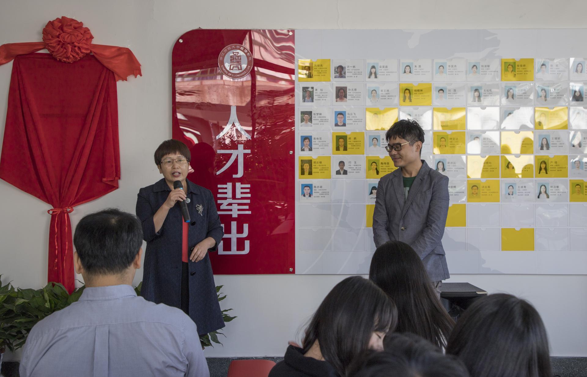 经理胡亦琴、公司党委书记沈水法、校团委副书记杨忍、FUN88乐天使员工会会长金鑫、上海员工分会副会长余忠娜共同为学创中心揭幕。当红绸缓缓揭下,锃亮的牌匾展现在眼前,大家投以凝重肃穆的目光和热情的掌声,将这一历史性时刻铭记心间。