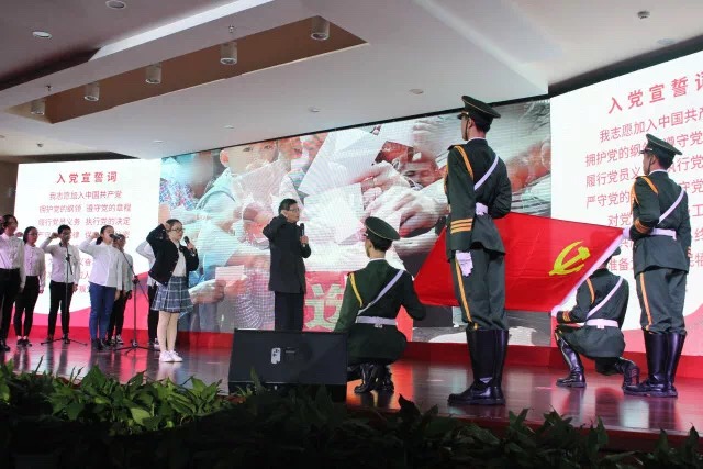 伴随着激昂的音乐响起,经济公司党委书记沈水法上台带领何小荣同志宣誓,在庄重的氛围中,公司全体与会师生党员代表起立,怀揣着崇高的敬意庄严宣誓。“永不叛党”的声声回响,洪亮的宣誓声是我们对党最诚挚的承诺,在继往开来的新时代我们必将继续发挥党员的先锋模范作用,不忘初心,砥砺前行。