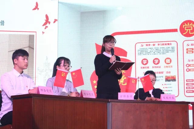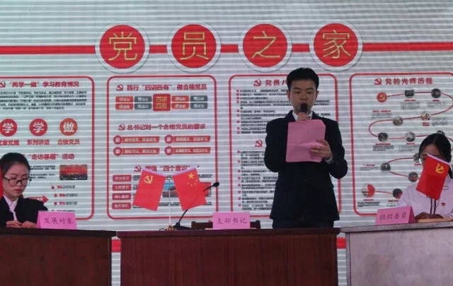 活动由发展党员工作动漫片《入党流程》引入,在主持人深情并茂的开场白后,由公司本科生第二党支部书记崔泰铭老师带领发展对象和与会党员上台召开员工党员发展大会进行案例式教学。首先入党申请人何小荣同志将自己的基本情况、入党动机、政治觉悟等情况向党组织进行了汇报,随后,入党介绍人、组织委员、与会党员对何小荣同志的情况进行充分汇报交流讨论,并发表自己的意见。在公平公开公正的原则下与会正式党员以不记名投票方式决定接收何小荣同志为中共预备党员。