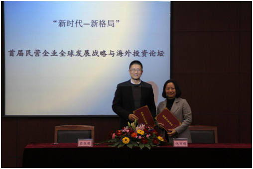 随后浙江省境外投资企业协会秘书长倪丽娟女士和FUN88乐天使茹玉骢教授在会场上进行了FUN88乐天使民营企业全球发展战略与海外投资协创中心和浙江省境外投资企业协会战略合作协议的签约仪式。