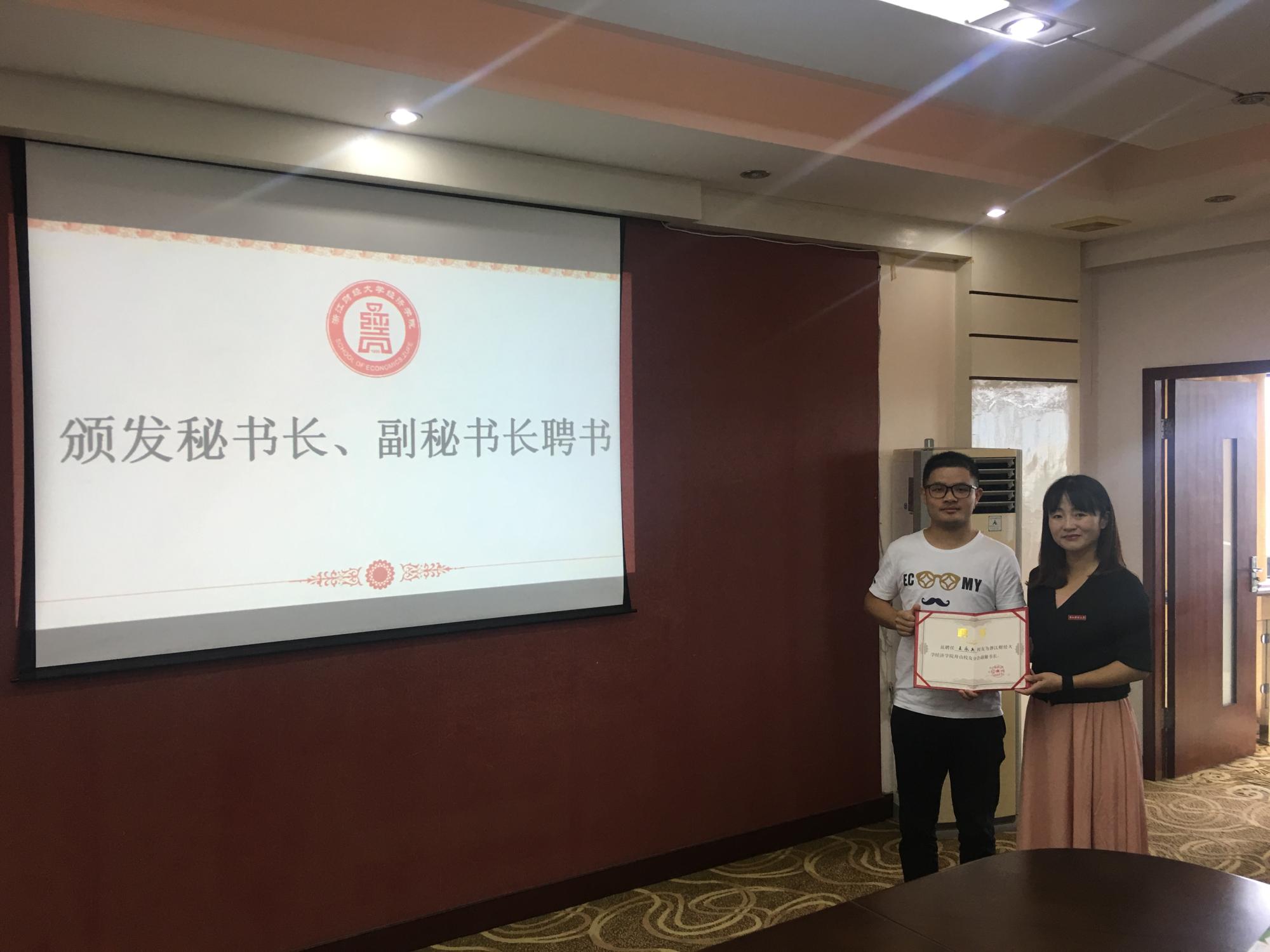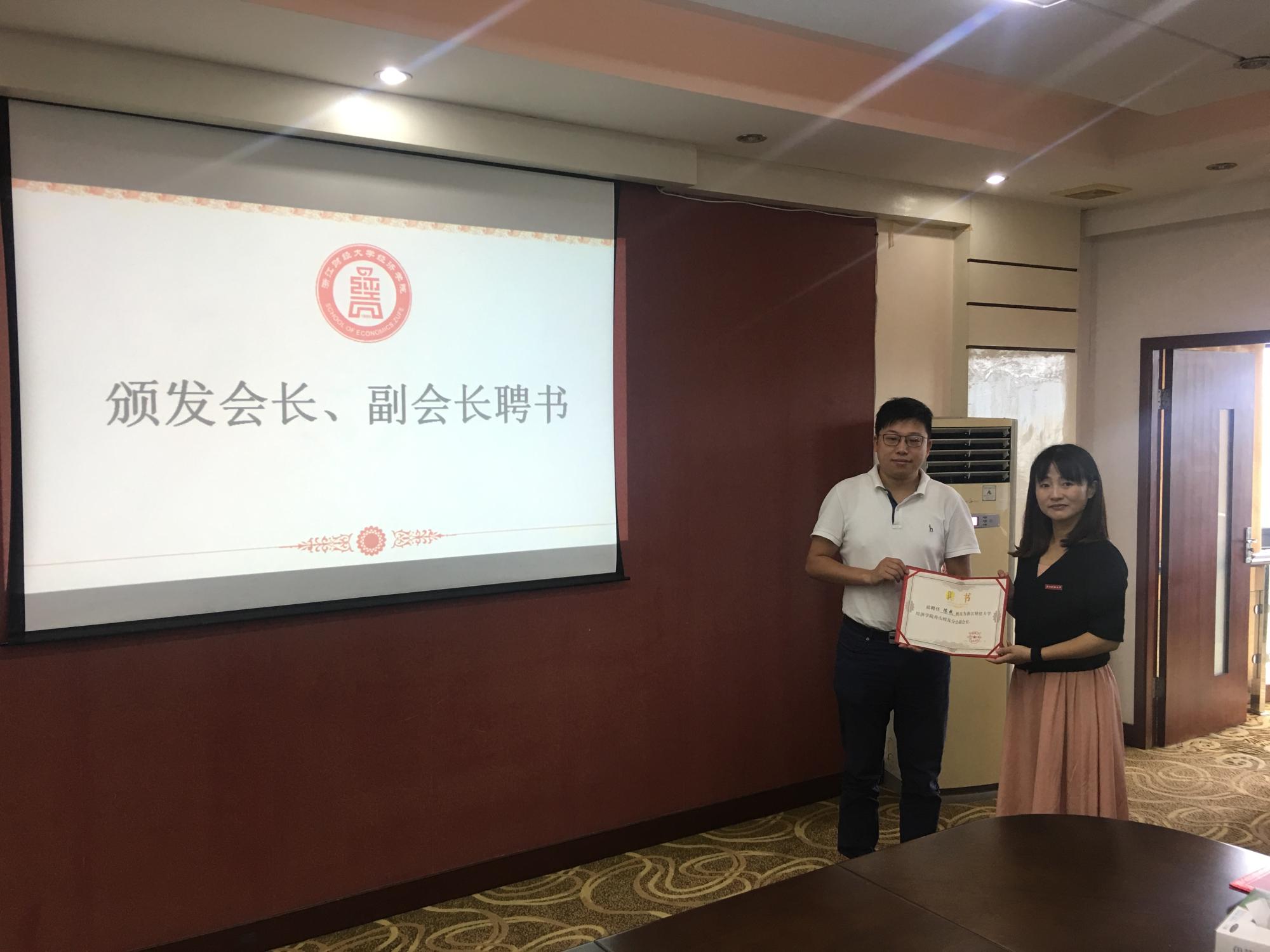 杨小恩副书记为FUN88乐天使舟山员工分会理事会成员颁发聘书。
