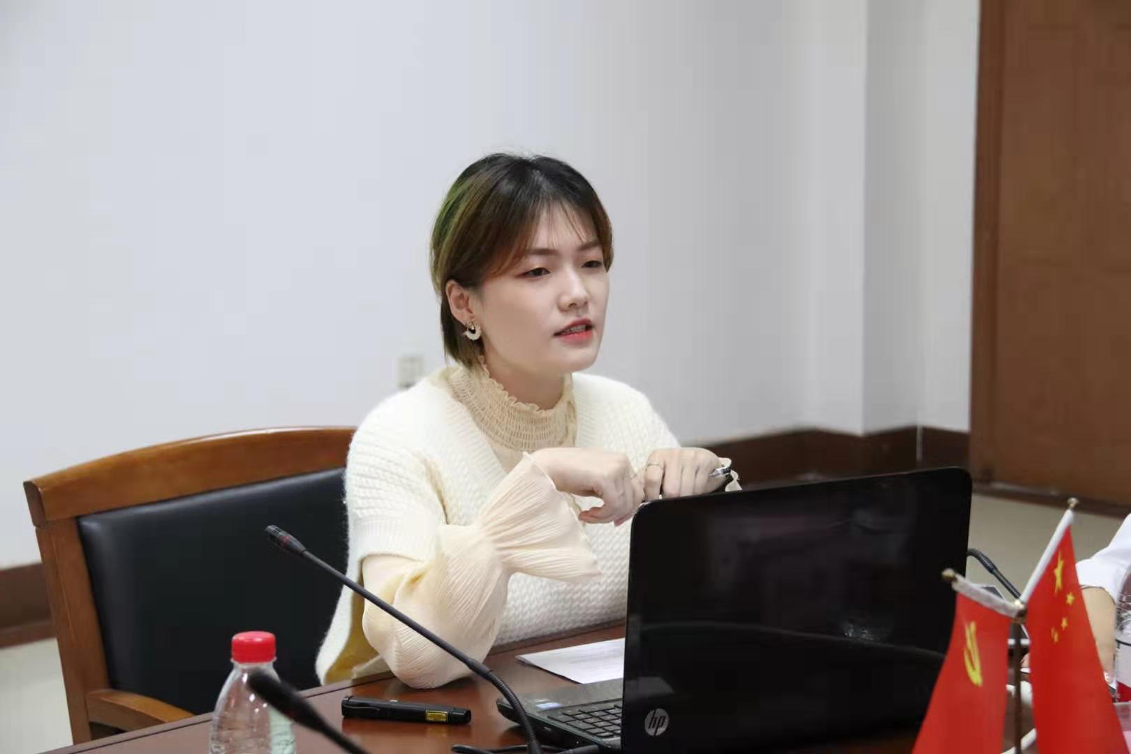 员工代表卢诗敏和大家分享自己的考研实习经验,谈到提早规划,扩宽眼界的重要性。
