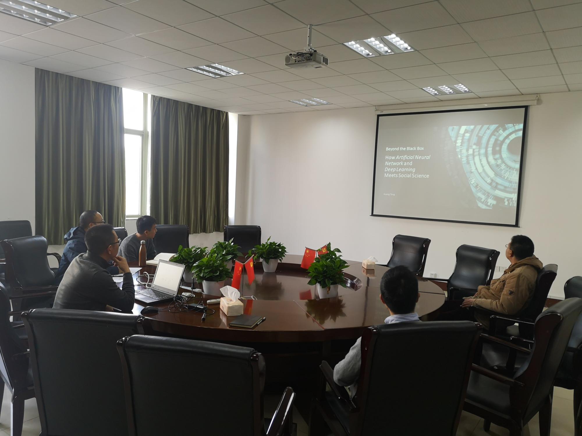 本次教研活动主题是“Beyond the Black Box: How Artificial Neural Network and Deep Learning Meets Social Science”。黄腾老师深入浅出地梳理了人工智能发展脉络之后,对其发展前沿进行了展望。在此基础上,他结合数量经济学教研室教学情况,展示了利用阿里云、百度云等现成模块开展《计量经济学》教育和研究的若干方向。