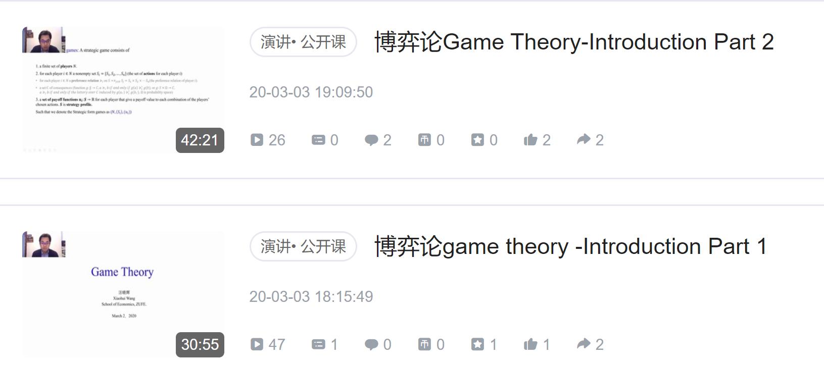 而《博弈论(双语)》是针对已经有相当经济学专业基础的大三员工,所以涉及较多的模型推导与解析,因此在线上讲授的过程中,辅以电子板书形式,让同学对模型的细节能有更深的体会。
