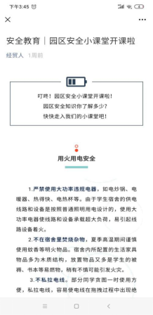 充分发挥新媒体平台覆盖面广、影响力大的特点,立足公司团委微信公众号“经贸人”,打造“云”端课堂,先后推出“金融安全伴我行”、“交通安全 始于足下”、“园区安全小课堂”三期主题推送,吸引共计360余人次阅读。春风化雨,润物无声,三期推送于潜移默化间宣传了安全知识,在员工群体中营造了“安全规则我知晓,安全守则我遵循”的良好氛围。