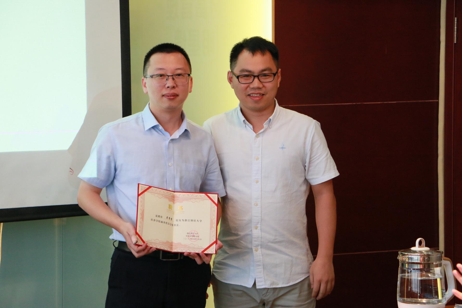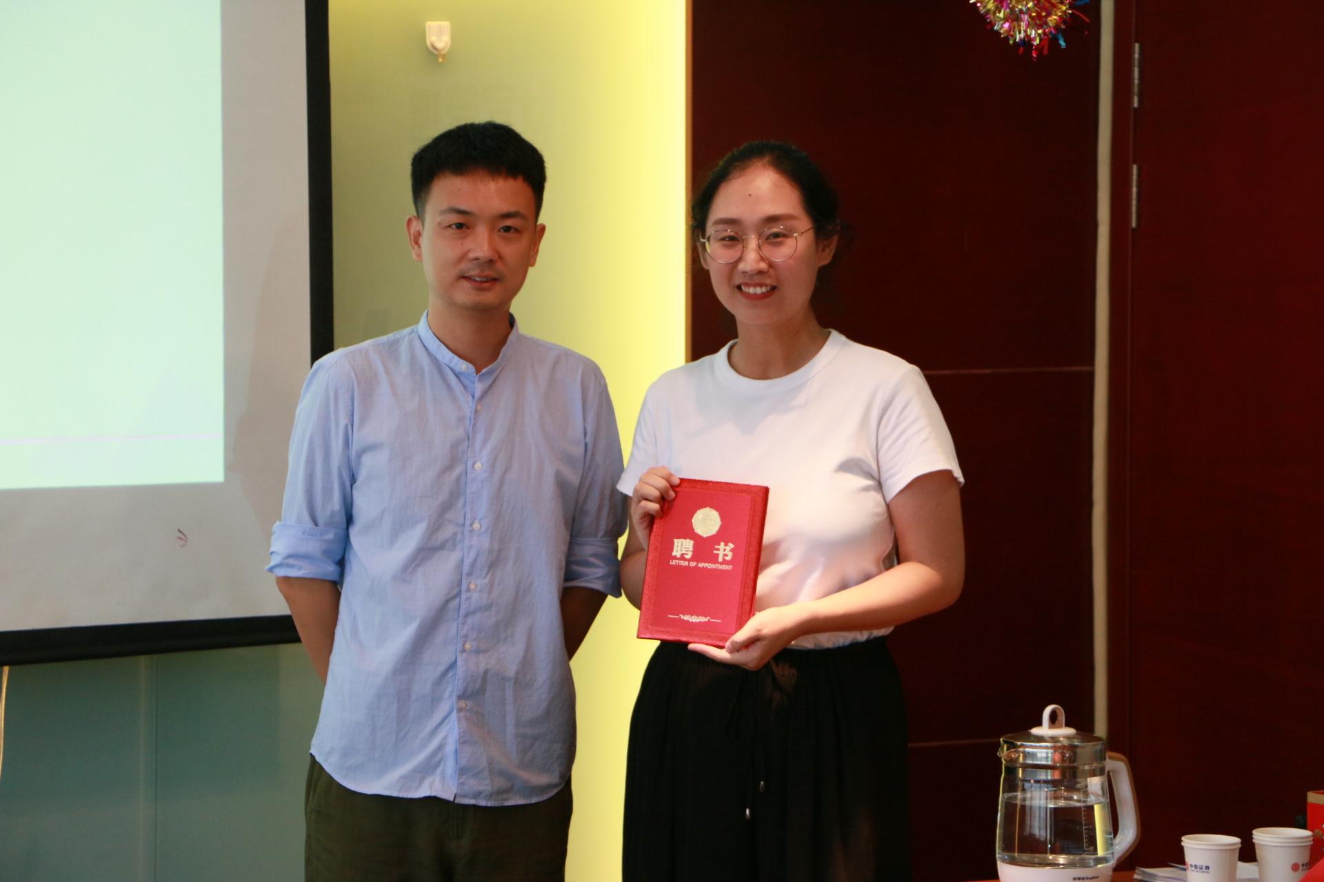 公司副经理罗俊为丽水员工分会秘书长颁发聘书