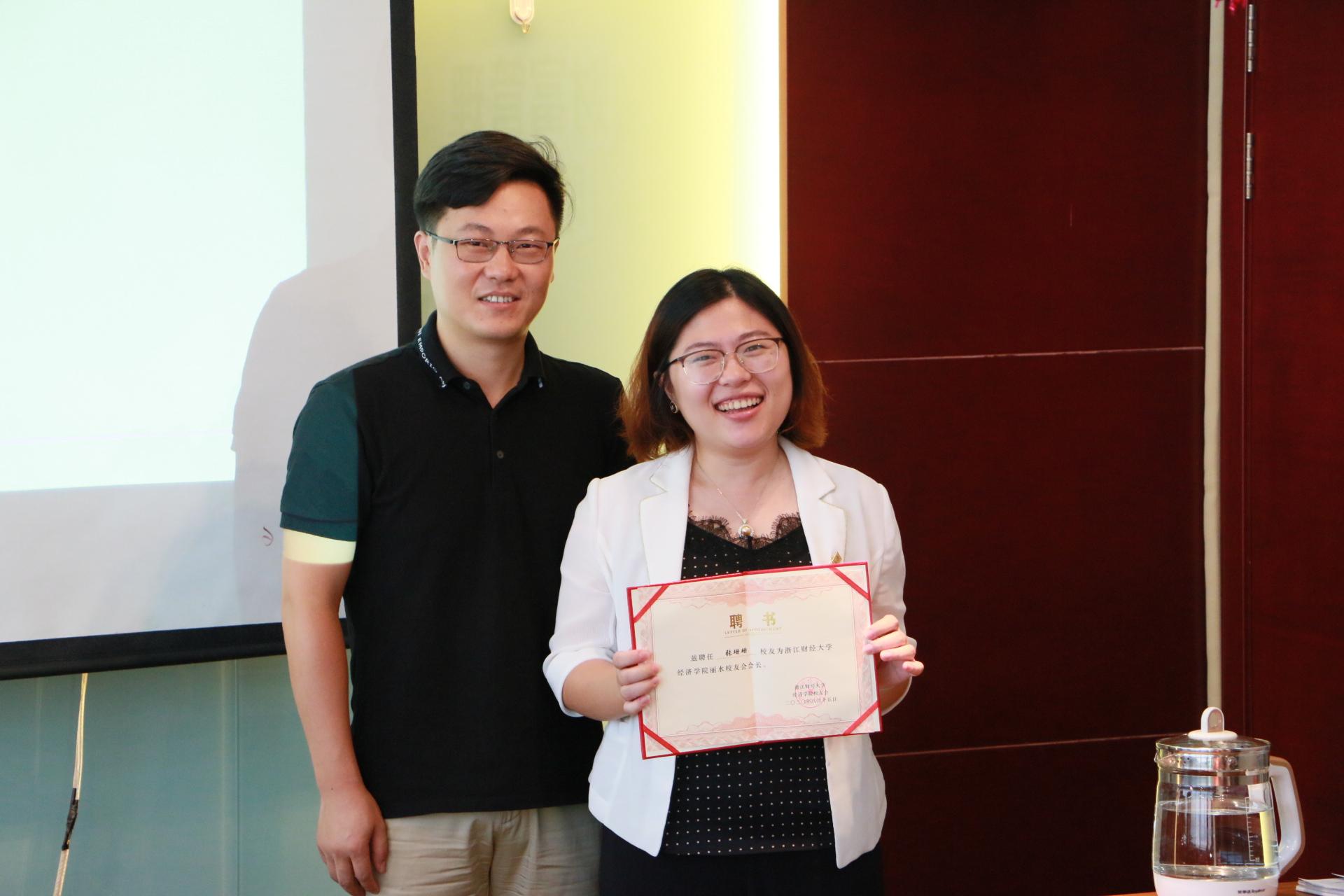 公司党委书记胡亦琴为丽水员工分会副会长颁发聘书