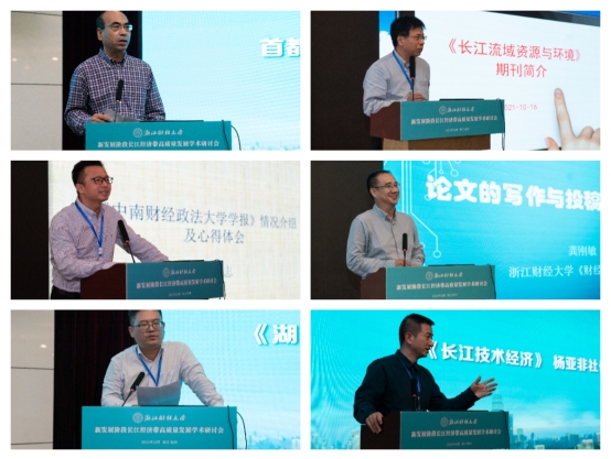 为了促进流域经济学研究的成果交流,首都经济贸易大学杂志总社牛志伟社长、《长江流域资源与环境》吕新华副主编、《中南财经政法大学学报》胡浩志编辑部主任、《财经论丛》龚刚敏副主编、《湖北社会科学》郁之行副主编、《长江技术经济》杨亚非社长先后分享了论文撰写与期刊投稿的经验。
