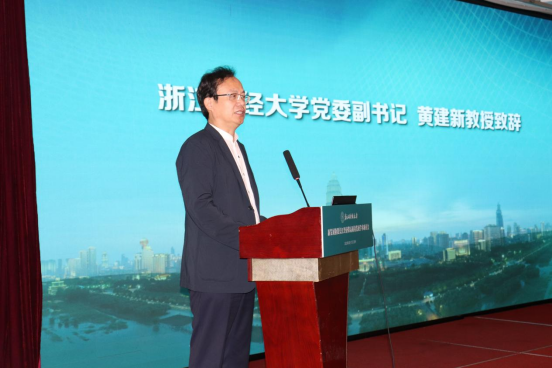 黄建新在致辞中代表公司对论坛的召开表示祝贺,对各位专家学者的到来表示欢迎和感谢,并介绍了公司的基本情况。他表示,公司将以承办此次研讨会为契机,不断加强与各高校及科研院所合作,进一步提高社会服务与协同创新能力,提升公司经济学学科群的建设水平,为争创社会主义现代化先行省、建设共同富裕示范区贡献智慧和力量。