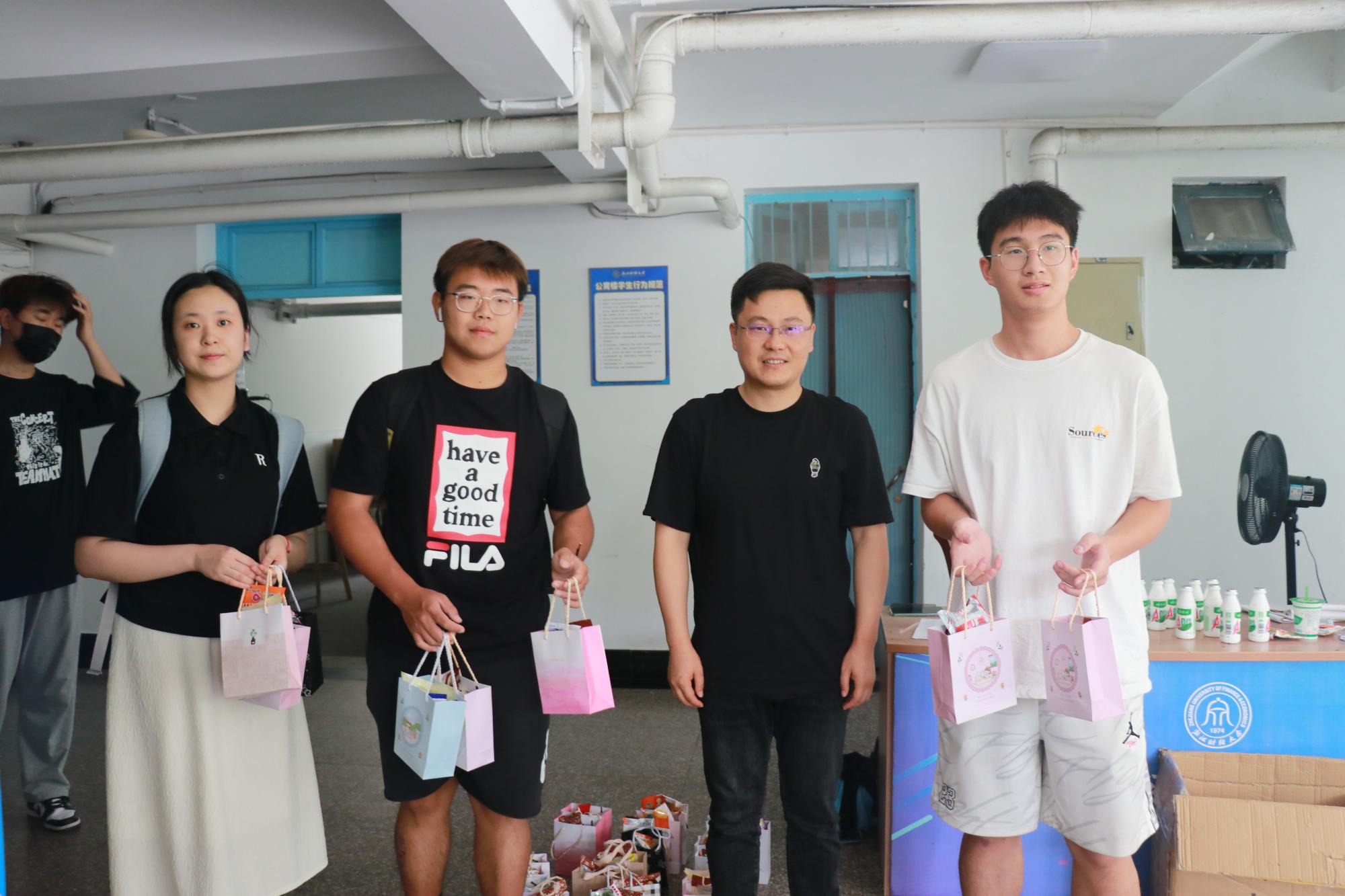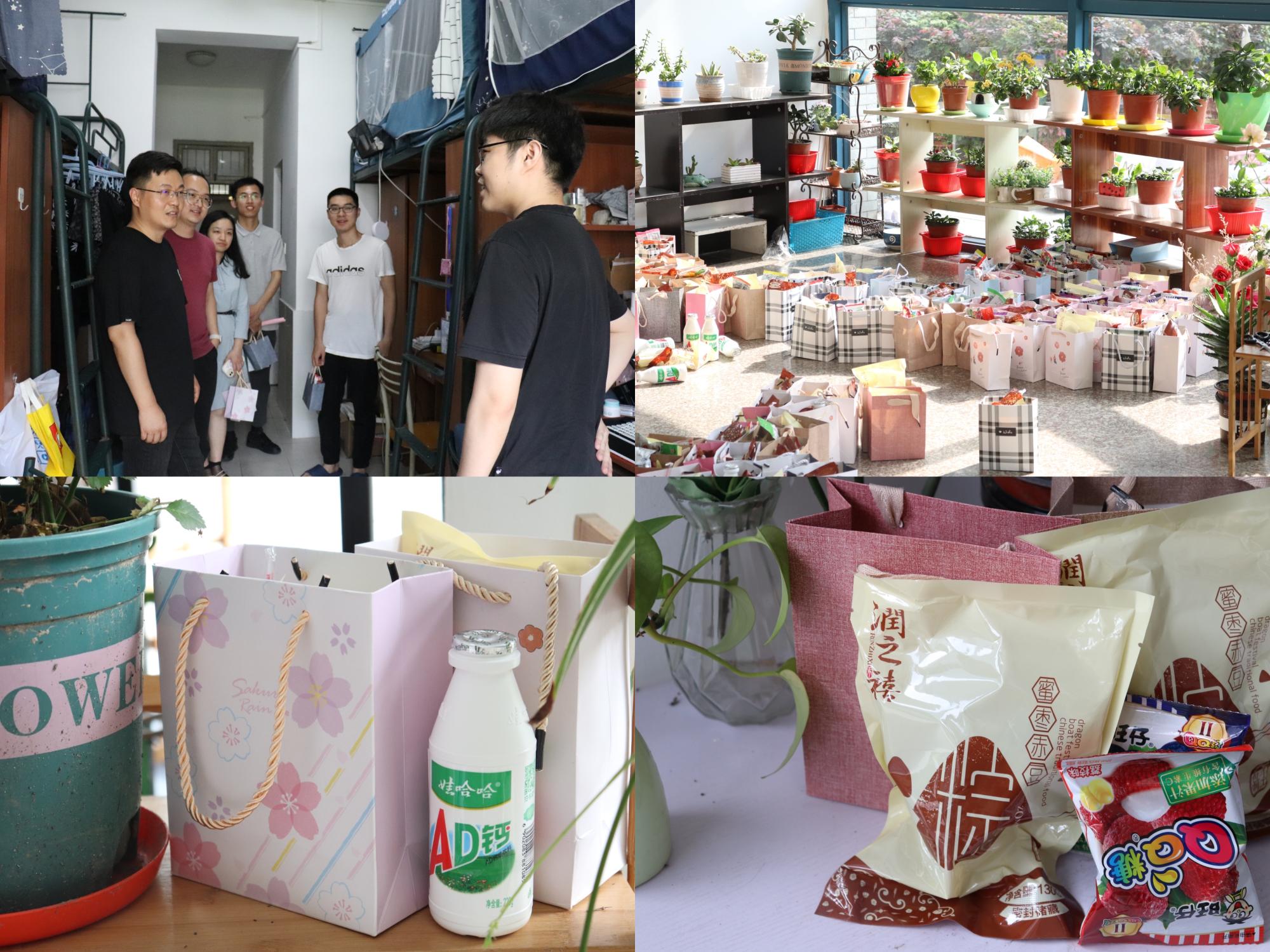 随后,老师们带着公司精心准备的“安康礼包”走访了员工宿舍,礼包中除粽子外,还放入了代表童年回忆的AD钙奶、QQ糖。老师们重点了解了同学们的假期和期末安排,叮嘱大家劳逸结合,保持锻炼,自觉遵守疫情防控要求,做到开心学习,积极生活,学业生活双高“粽”。