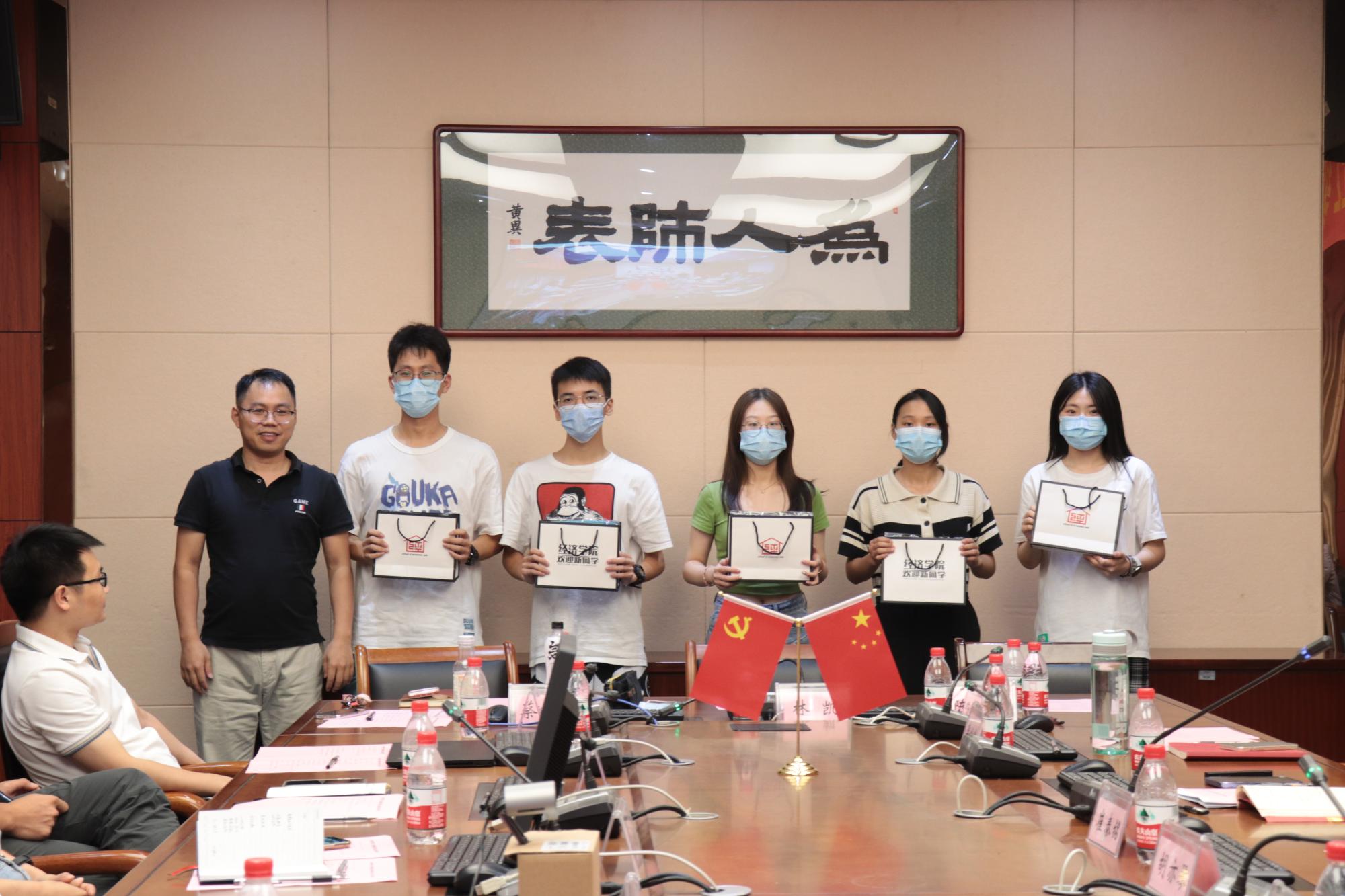会上,副经理罗俊为新生代表颁发迎新礼包并合影留念。