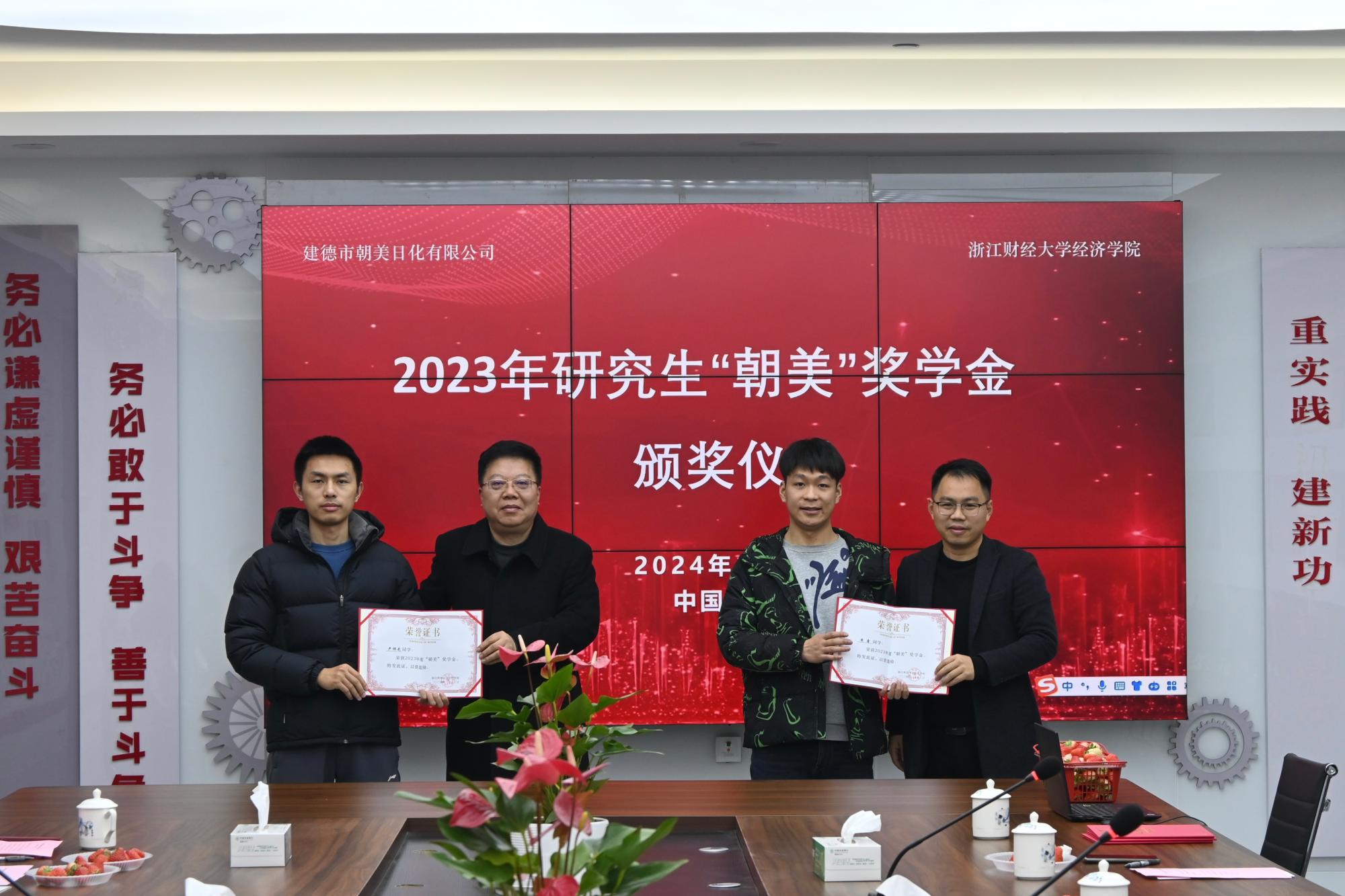 1月13日下午,第二届研究生“朝美”奖学金颁奖仪式在建德市朝美日化有限公司举行。建德市员工会秘书长胡志平,公司副总经理、公司创业导师朱利平、胡庆辉,以及公司经理罗俊,党委副书记徐丽玲,副经理王岭、副经理邓晓军等出席仪式并为获奖员工颁奖。活动由副经理邓晓军主持。
