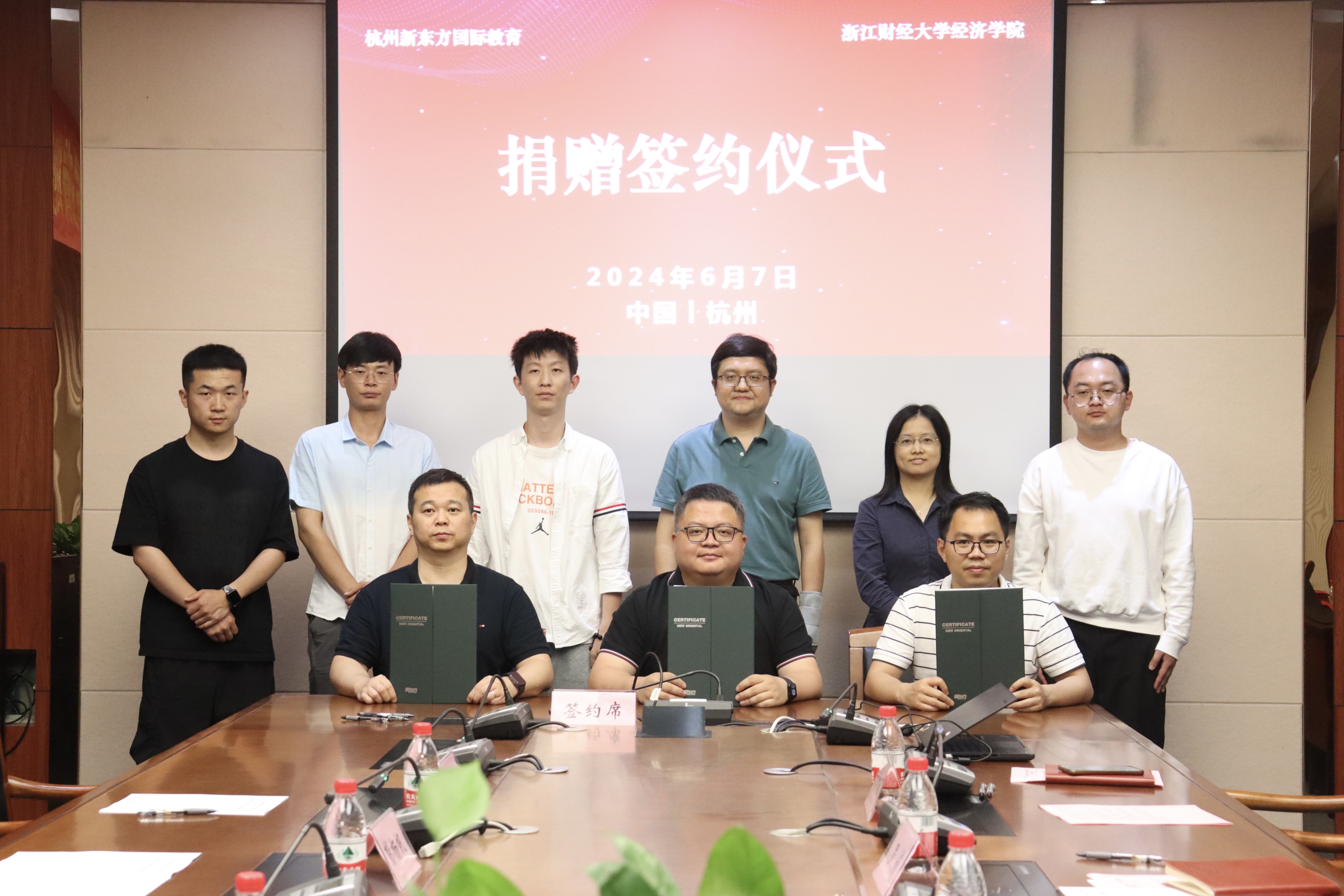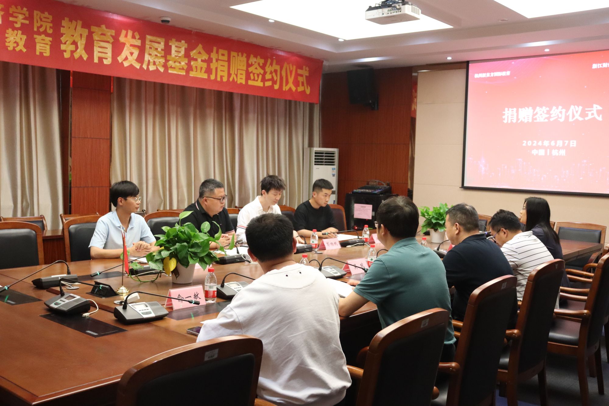 6月7日下午,FUN88乐天使“经济-新东方”基金捐赠仪式在FUN88乐天使楼210会议室隆重举行。新东方国际教育总经理贺锐奇、市场经理彭杨帆、市场主管张敬选、市场主管满建洲出席仪式,员工办公室主任吴玻、公司经理罗俊、党委书记徐奇伟、党委副书记徐丽玲、团委书记俞一献等一同出席了捐赠仪式。仪式由徐丽玲主持。
