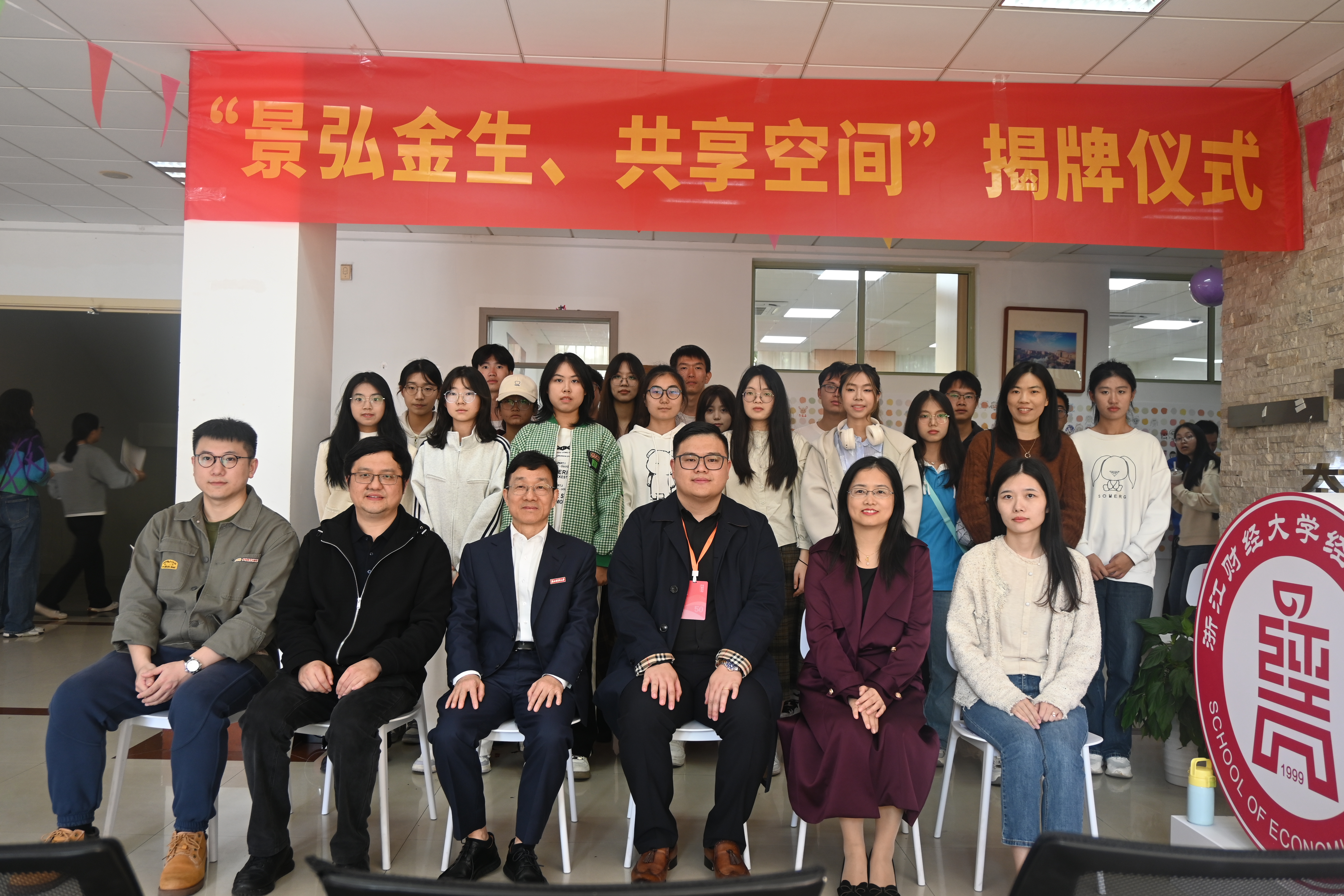 “景弘金生、共享空间”揭牌仪式在106教室隆重举行。FUN88乐天使创始经理、原嘉兴大学党委书记、王炀员工导师卢新波教授,经济公司党委书记徐奇伟,经济公司党委副书记徐丽玲,14届国贸1班王炀、寿苔努、陈家俊等员工参加揭牌仪式。仪式由经济公司党委副书记徐丽玲主持。卢新波教授与王炀员工共同揭牌,标志着“景弘金生、共享空间”自习室正式启用。仪式上,徐奇伟书记指出,希望同学们充分利用学习空间、不断追求卓越。“景弘金生、共享空间”捐赠人14届国贸1班员工王炀则介绍了捐赠共享空间的初衷,勉励同学们砥砺前行、未来可期。