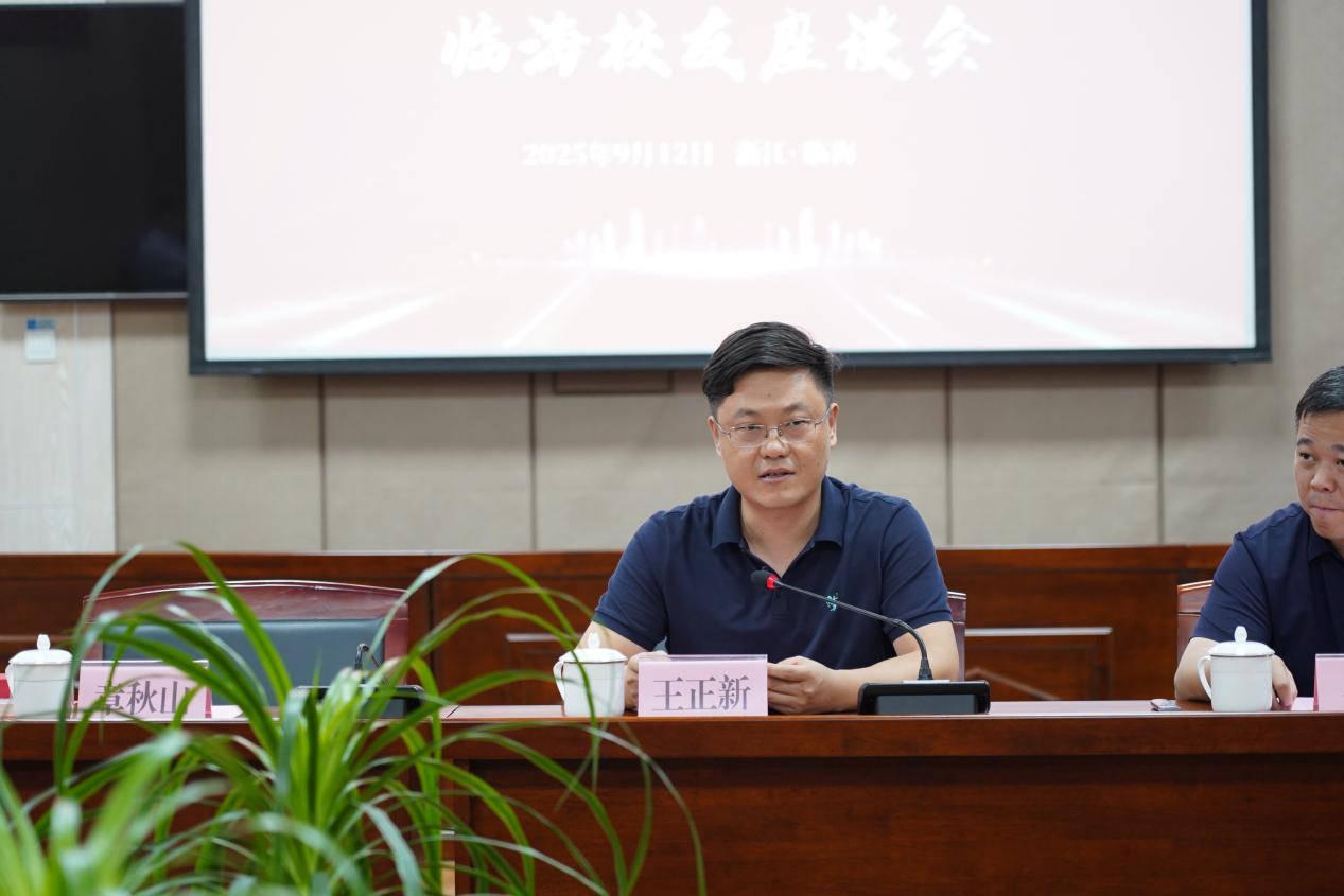 校宣传部部长王正新代表公司向员工致以诚挚问候,对广大员工长期以来给予公司事业发展的关心与支持表示衷心感谢,王正新系统介绍了母校近年来在团队建设、人才培养、校园发展等方面的重要成果,包括成功入选省高水平大学建设高校、应用经济学跻身省登峰学科、新增 2 个一级学科博士点、正式获得硕士推免资格等,充分肯定了临海税务系统员工扎根岗位、精准落实税收政策、服务地方发展的责任担当。同时解读公司 “使命文化大讨论”活动背景 及 “财经 × 数智”“财经 × 科技”“财经 + 产业” 人才培养改革方向,诚挚邀请员工结合行业实践建言献策,共同推动公司文化建设与人才培养质量提升。