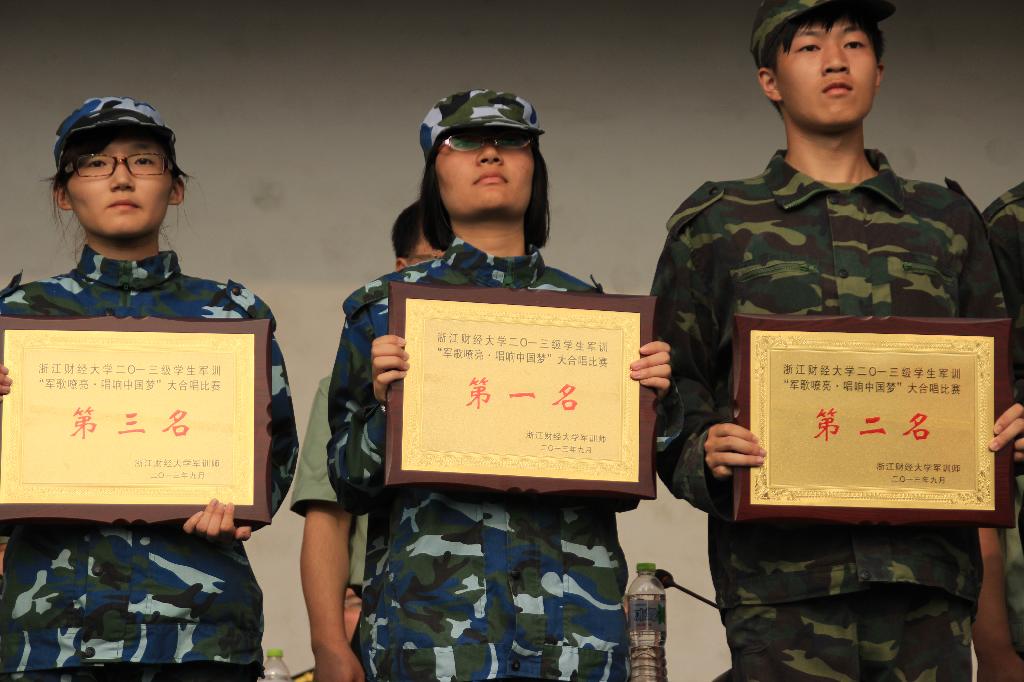 最后,公司党委书记韩翼祥教授宣布了评奖结果,经贸学子们的出色表现为六营赢得了“队列先进集体”的称号。大会还就“军歌嘹亮·唱响中国梦”大合唱比赛进行了颁奖,六营在该比赛中获得了第一名的好成绩。