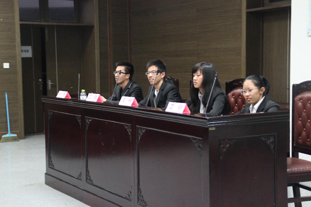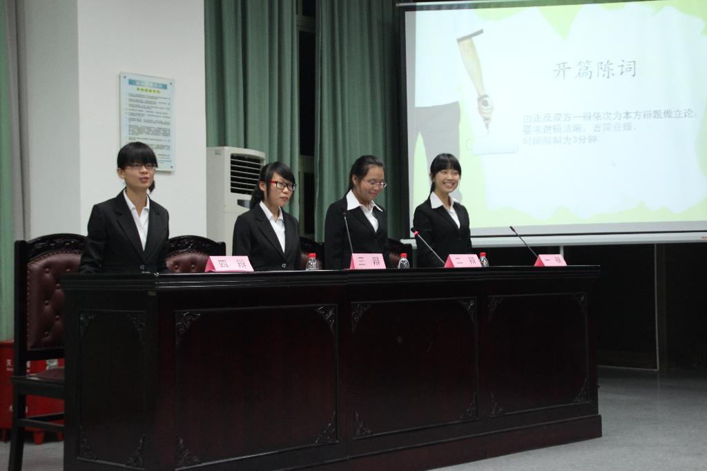 11月8日晚八点,经贸公司13级新生辩论赛决赛在法公司模拟法庭举行。13国贸一班和13国民经济班展开了激烈争夺,最后13国贸一班摘得桂冠。经贸公司团委书记汪风易、思政辅导员赵聪、谭立娟到场观看了比赛。