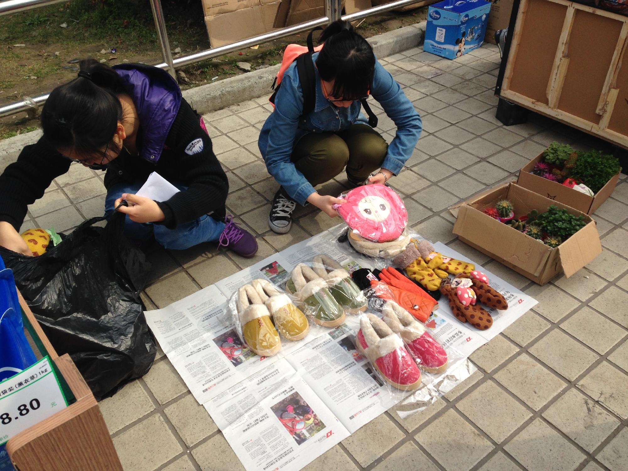 A组成员以受广大老员工喜爱的甜甜圈为突破口,进行甜品的销售。一开卖便受到热捧与支持,收获满满。而E组同学集思广益,以物美价廉的小商品为本,主打生活使用换季品、手机贴膜等,也获得了不小的成果。