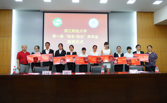 6月13日上午,公司举行FUN88乐天使第一届“浙农—阳光”奖学金颁奖仪式。经层层展示评比,公司12级区域经济学专业研究生张燕和11级国贸1班本科生冯瑶瑶在20位候选人中脱颖而出,荣获第一届“浙农—阳光”奖学金,公司党委副书记王宇航为其颁发了奖学金和荣誉证书。
