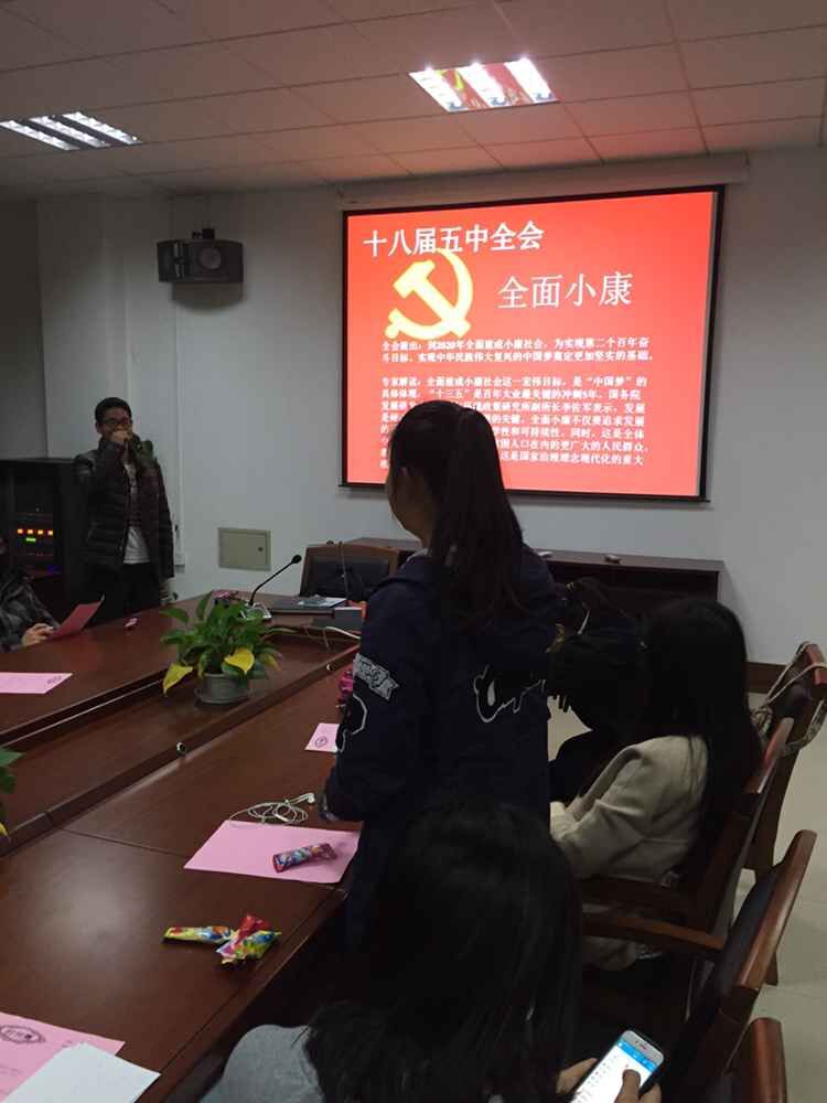 全院师生利用报纸、广播、电视、网络、手机等载体积极关注会议动态,通过召开理论中心组学习会、组织生活会、主题班会等一系列活动认真学习全会精神,并结合工作实际,开展研讨交流,畅谈感想体会,在全院上下掀起了学习十八届五中全会的热潮。