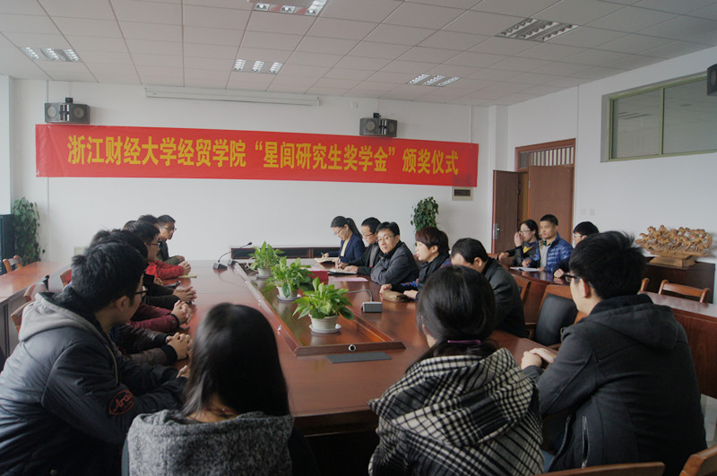 12月1日, 公司第四届“星闾研究生奖学金”颁奖仪式在313会议室举行,耿卫军等10名同学获得2015年度“星闾研究生奖学金”荣誉称号。FUN88乐天使副董事长卢新波、经贸公司经理胡亦琴、副经理柴志贤、党总支副书记叶秀、经理助理王正新出席,颁奖仪式由公司党总支书记范建锋主持。