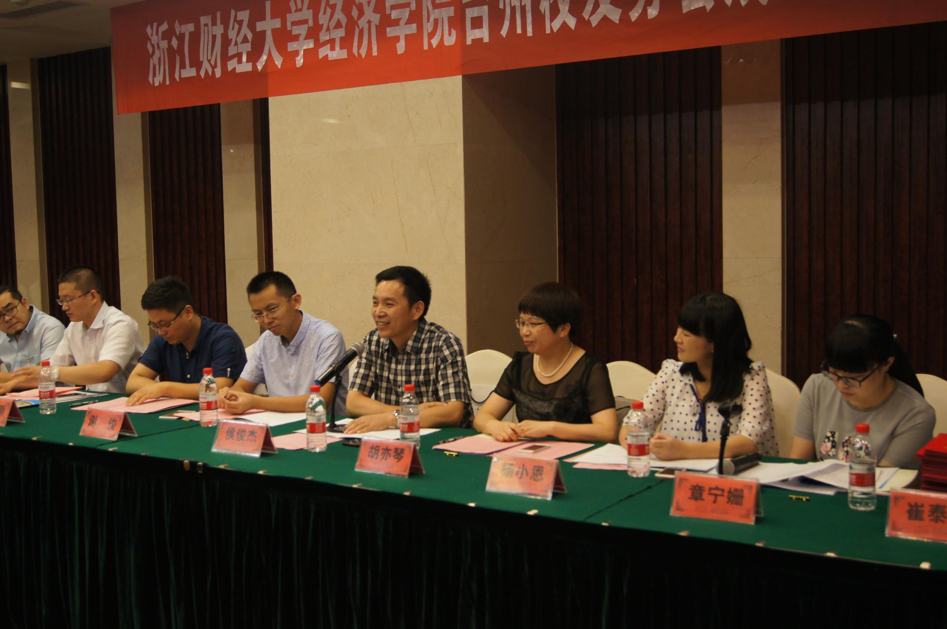 在观看了一段回忆财大历程的短片后,胡亦琴向员工们介绍了母校和公司近几年来发展、改革和建设的情况。她说,公司和公司十分重视员工工作,现各地员工机构日趋完善,聚集了越来越多的浙财人在此求学工作。台州员工分会是我院成立的第二个省内员工会,值得庆祝和鼓励。随后,她饱含深情的回忆了和同学们朝夕相处的美好时光,对一直关心公司工作的台州员工表示衷心感谢,并提出了真切的期许和祝福。