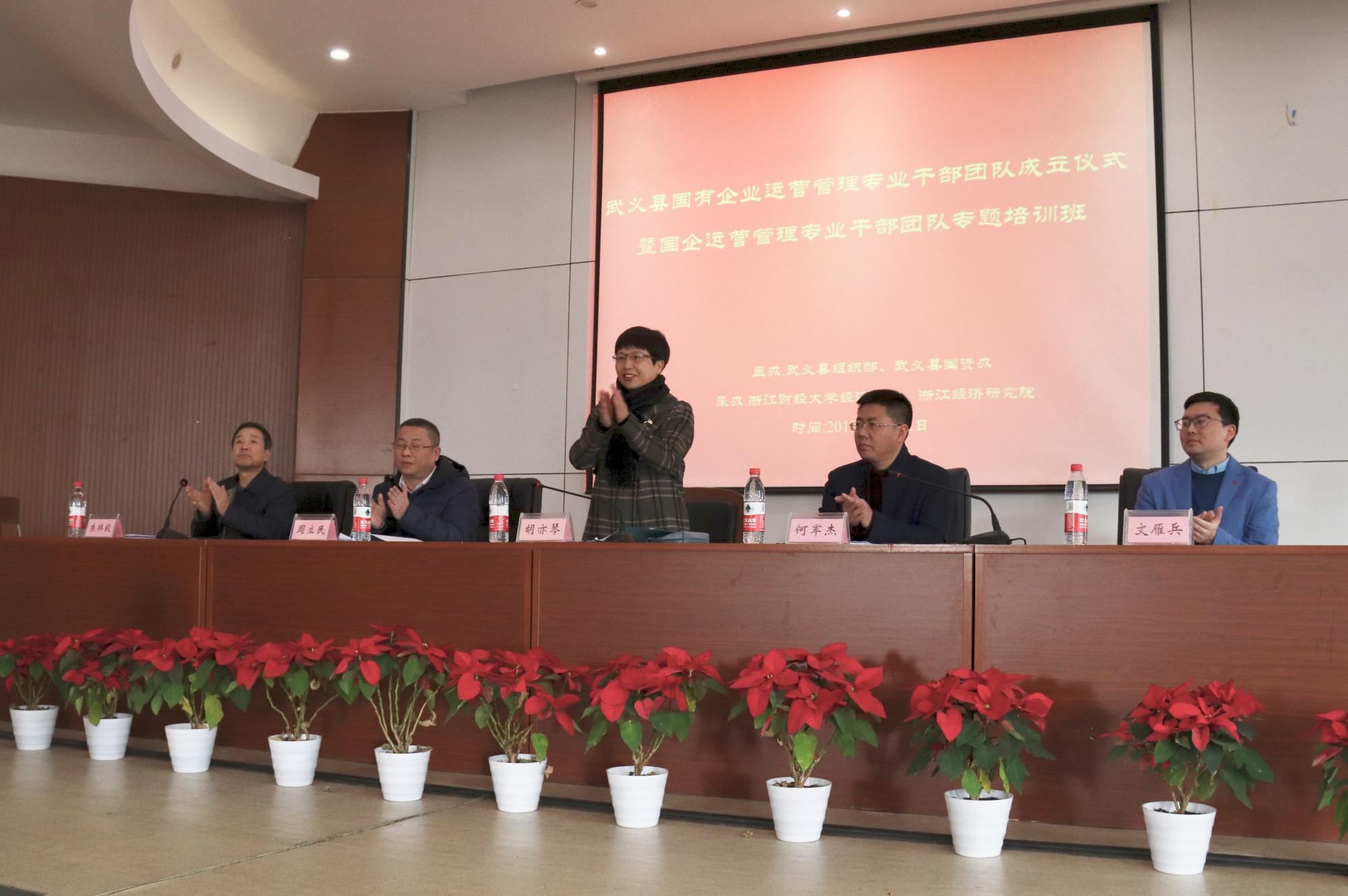 培训班开班仪式于12月2日在公司楼219报告厅举行,公司经理胡亦琴教授出席仪式并致辞,武义县组织部和武义县国资办领导、FUN88乐天使浙江经济研究院副经理文雁兵老师参加开班仪式。