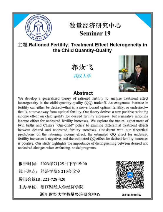 主题: Rationed Fertility: Treatment Effect Heterogeneity in the Child Quantity-Quality