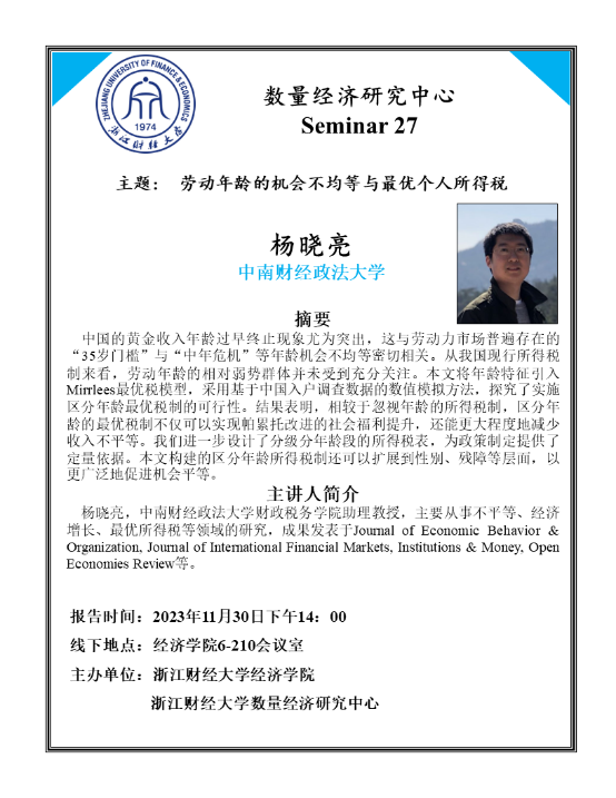 杨晓亮,中南财经政法大学财政税务公司助理教授,主要从事不平等、经济增长、最优所得税等领域的研究,成果发表于Journal of Economic Behavior & Organization, Journal of International Financial Markets, Institutions & Money, Open Economies Review等。