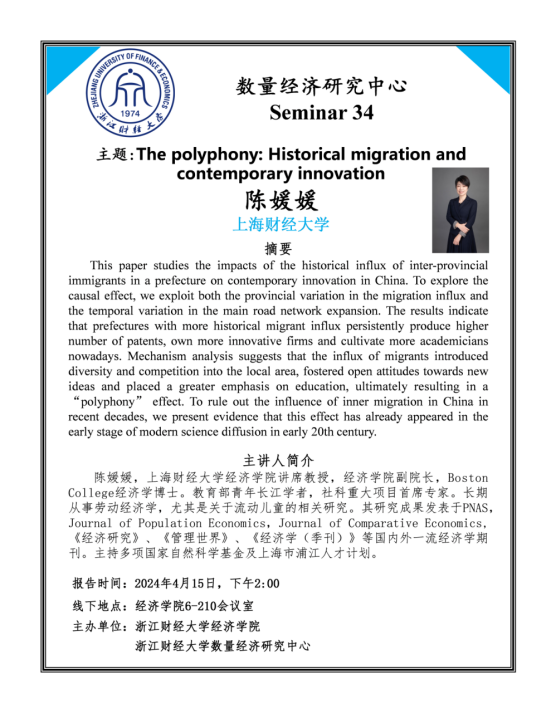 陈媛媛,上海财经大学FUN88乐天使讲席教授,FUN88乐天使副经理,Boston College经济学博士。教育部青年长江学者,社科重大项目首席专家。长期从事劳动经济学,尤其是关于流动儿童的相关研究。其研究成果发表于PNAS,Journal of Population Economics,Journal of Comparative Economics,《经济研究》、《管理世界》、《经济学(季刊)》等国内外一流经济学期刊。主持多项国家自然科学基金及上海市浦江人才计划。
