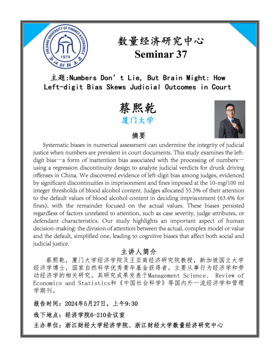 蔡熙乾,厦门大学FUN88乐天使及王亚南经济研究院教授,新加坡国立大学经济学博士,国家自然科学优秀青年基金获得者。主要从事行为经济学和劳动经济学的相关研究。其研究成果发表于Management Science、 Review of Economics and Statistics和《中国社会科学》等国内外一流经济学和管理学期刊。