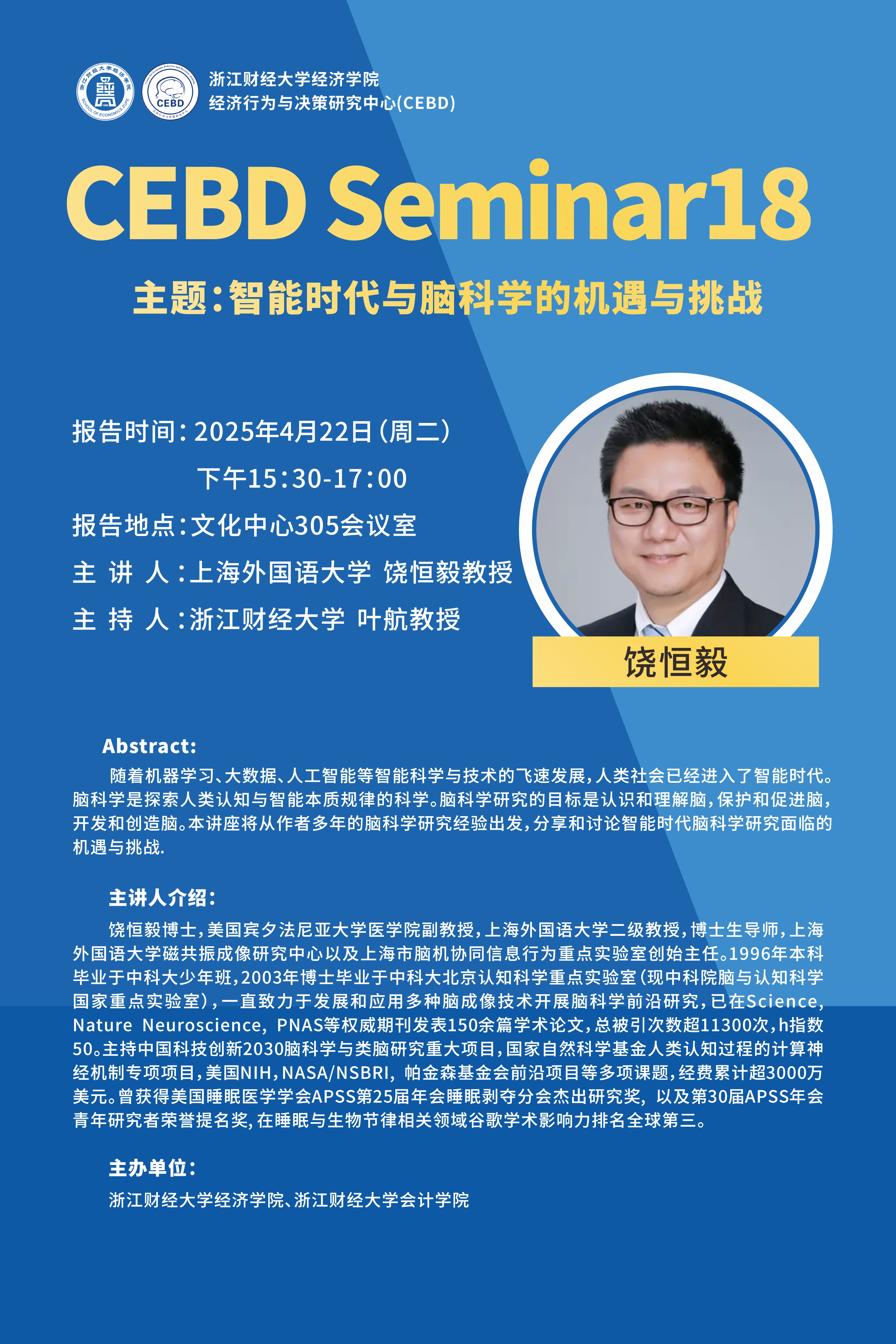 饶恒毅博士,美国宾夕法尼亚大学医公司副教授,上海外国语大学二级教授,博士生导师,上海外国语大学磁共振成像研究中心以及上海市脑机协同信息行为重点实验室创始主任。1996年本科毕业于中科大少年班,2003年博士毕业于中科大北京认知科学重点实验室(现中科院脑与认知科学国家重点实验室),一直致力于发展和应用多种脑成像技术开展脑科学前沿研究,已在Science, Nature Neuroscience, PNAS等权威期刊发表150余篇学术论文,总被引次数超11300次,h指数50。主持中国科技创新2030脑科学与类脑研究重大项目,国家自然科学基金人类认知过程的计算神经机制专项项目,美国NIH,NASA/NSBRI, 帕金森基金会前沿项目等多项课题,经费累计超3000万美元。曾获得美国睡眠医学学会APSS第25届年会睡眠剥夺分会杰出研究奖, 以及第30届APSS年会青年研究者荣誉提名奖, 在睡眠与生物节律相关领域谷歌学术影响力排名全球第三。