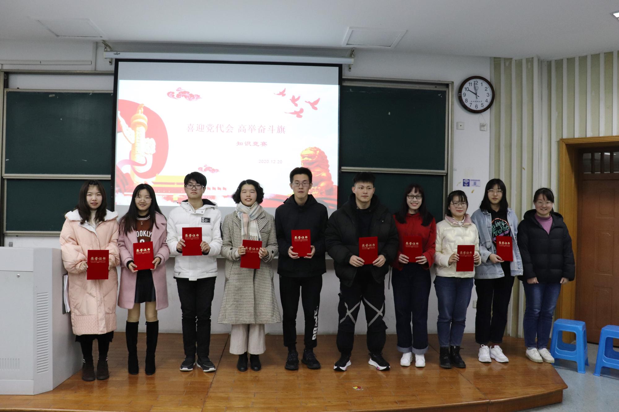 整个比赛共分为团体答题赛、战队抢答赛和冠亚季军争夺赛三个环节。竞赛内容涵盖党代会背景知识精神、党史、新中国史、改革开放史以及社会主义发展史等相关内容,参赛的同学们热情高涨,积极应答,现场气氛十分热烈。经过激烈的角逐,本科生第二党支部获得一等奖,本科生第三党支部获得二等奖,研究生第二党支部获得三等奖。