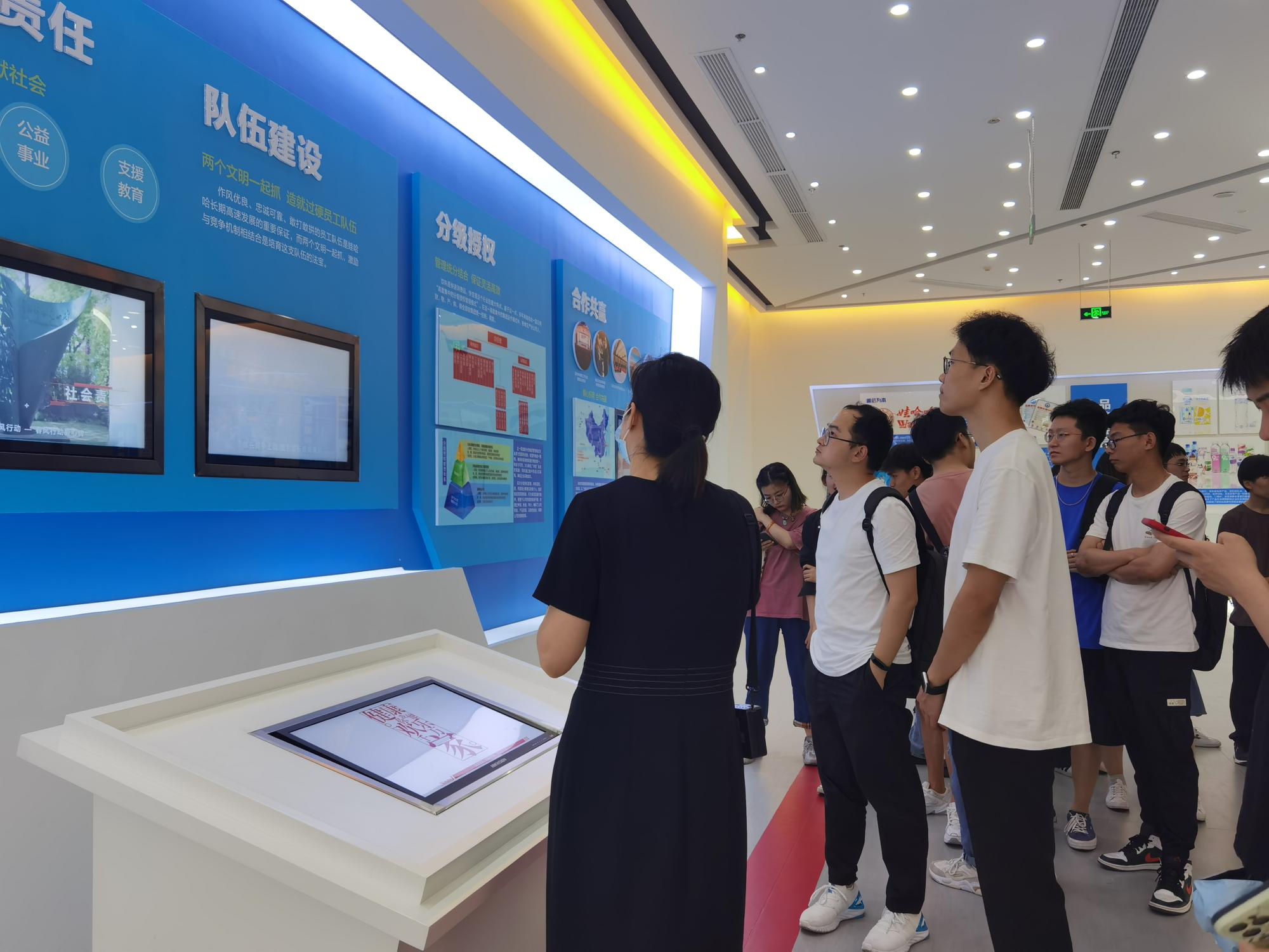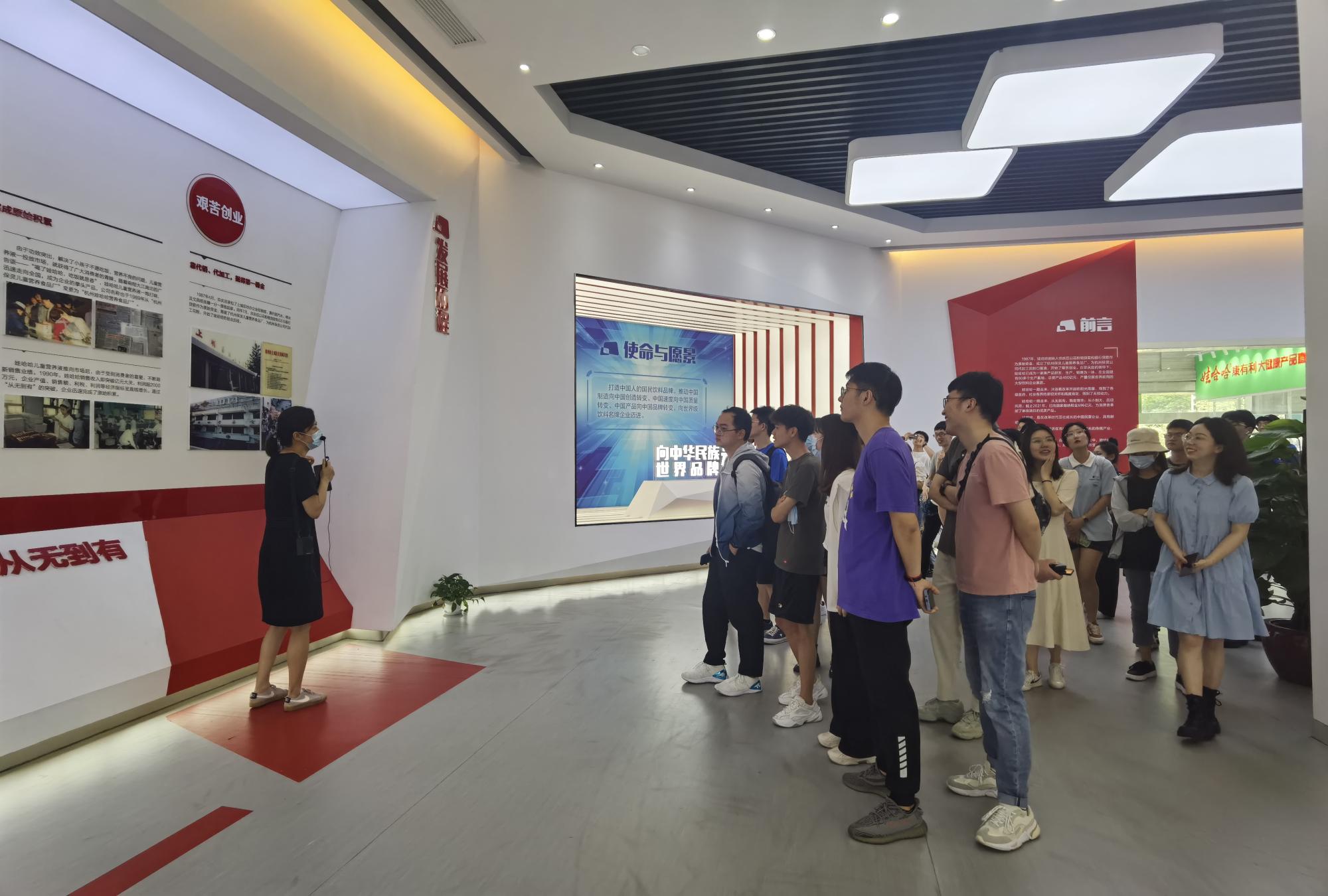 艰苦创业、从无到有,大家跟随讲解员走进了娃哈哈的创业历程。30多年来,娃哈哈在改革开放中茁壮成长起来,不断开拓,锐意进取,从一家小公司办企业成长为中国最大的饮料企业。讲解员向大家介绍了娃哈哈的产品,分享了“大党建”工作、小步快跑战略、管理和技术创新、品牌建设、营销战略、企业文化、智能制造、大健康产业发展等方面的经验。