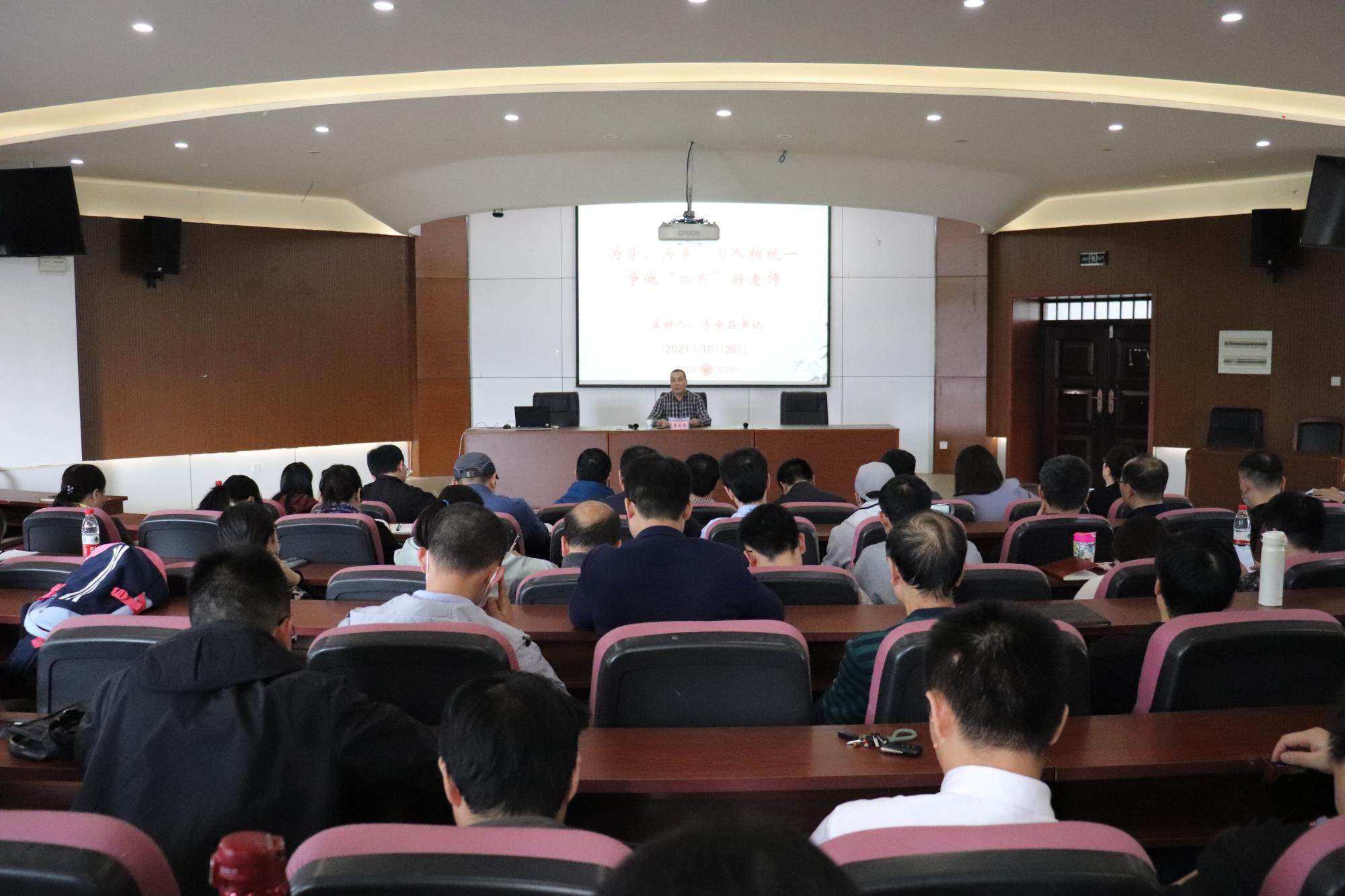 为扎实推进党史学习教育,深入学习贯彻习近平总书记关于教育的重要论述,切实加强师德建设,10月26日下午,公司党委书记李金昌走进公司,以《为学、为事、为人相统一,争做“四有”好老师》为题,为全院教师讲授了一堂详实生动的专题党课,党课由公司党委书记胡亦琴主持。