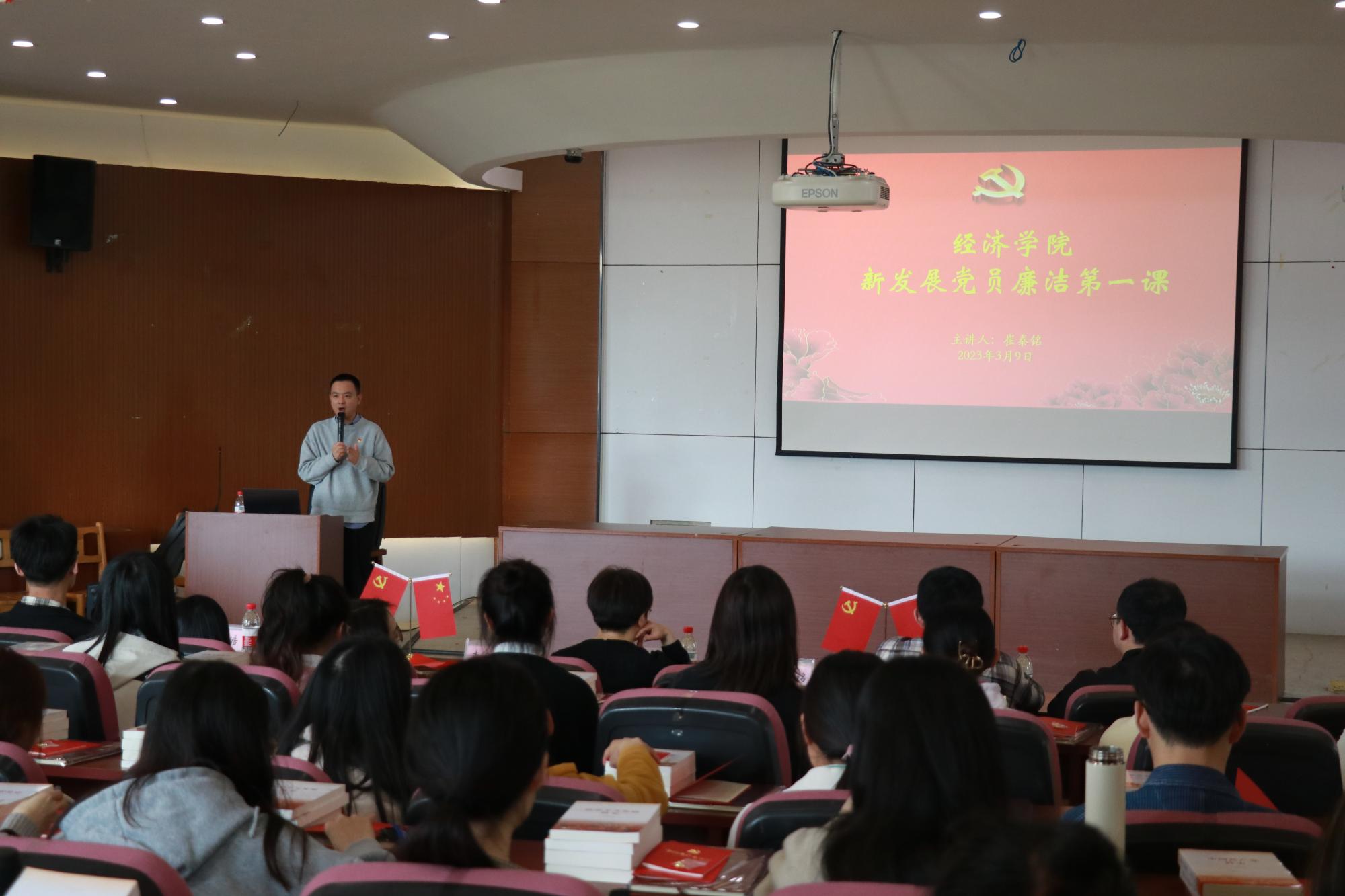 胡亦琴从自身入党经历出发,寄语新发展党员坚定入党信念,牢记全心全意为人民服务的宗旨,增强“四个意识”、坚定“四个自信”、做到“两个维护”,争做有理想、敢担当、能吃苦、肯奋斗的新时代青年党员。崔泰铭从从政治纪律、身份意识、诚实守信等方面为新发展党员讲授廉洁第一课,要求大家牢固树立底线思维,修好对党忠诚的大德、严于律己的品德,发挥好党员表率作用。