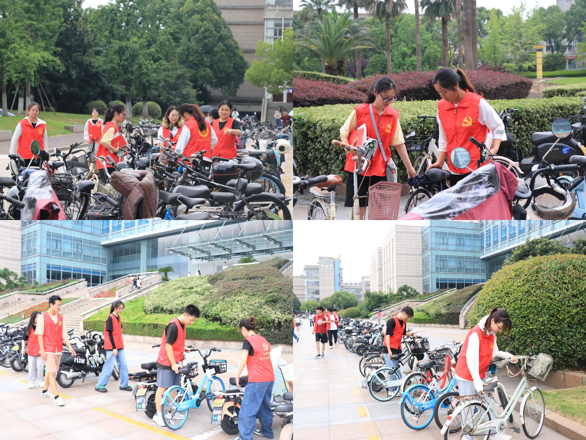 在公司图书馆前,公司新发展的党员们积极投身非机动车乱停乱放的集中整治志愿服务活动,他们用心悉心,将混乱的车辆有序地摆放在规定的停车区域,点亮了校园的一抹秀美色彩。