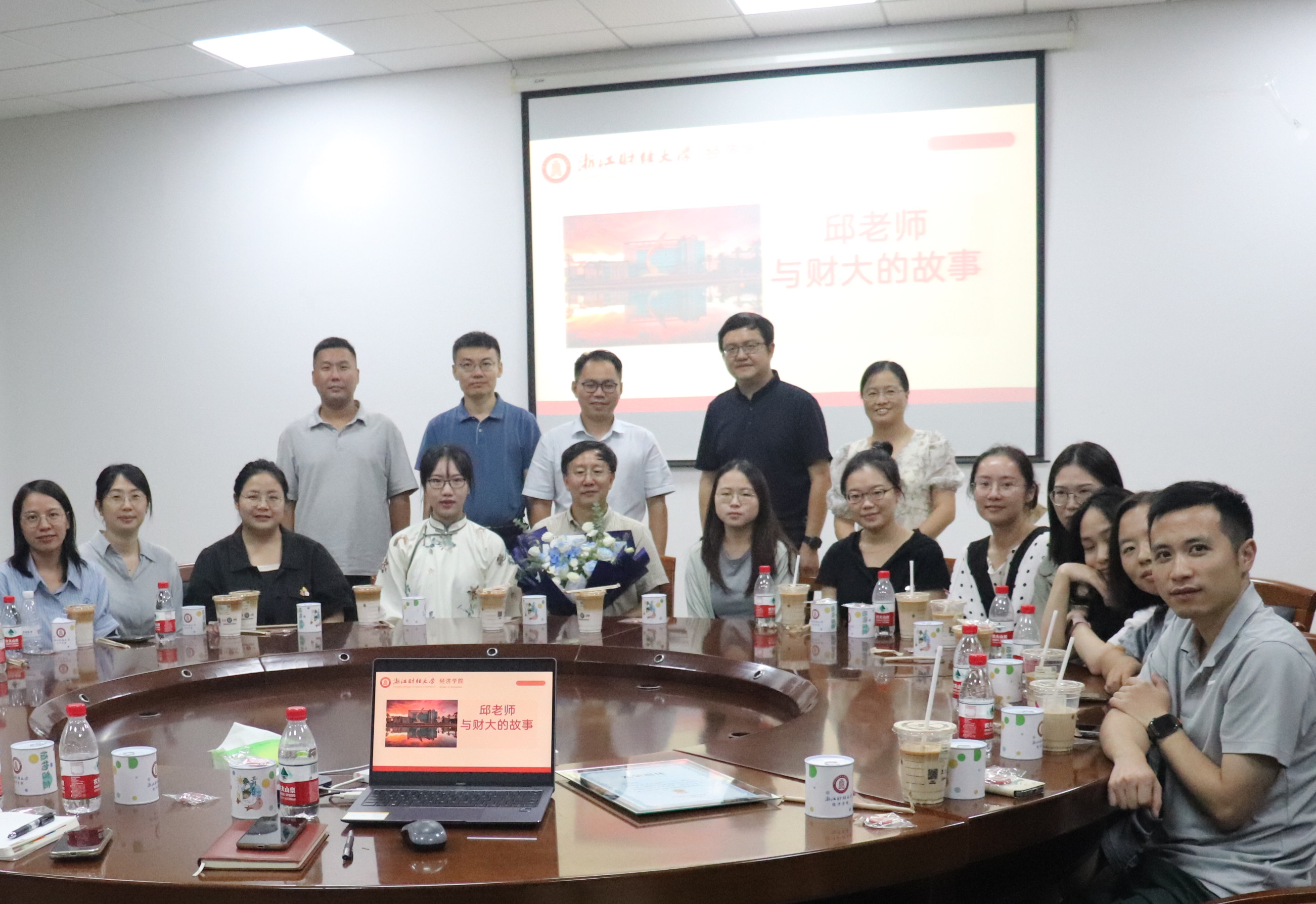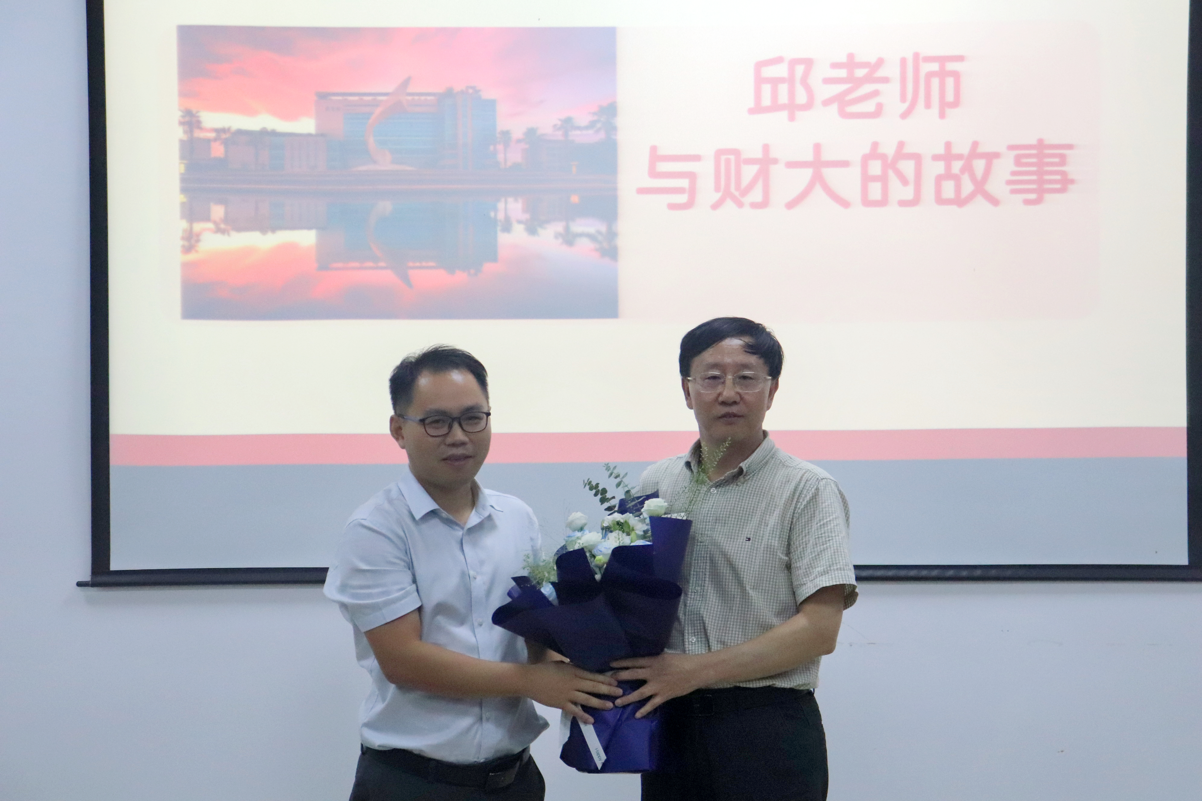 罗俊经理高度评价了邱老师在学术研究、教学育人及公司发展等方面所做出的杰出贡献。邱老师则以他特有的谦逊与风趣,分享了自己的教育感悟,鼓励年轻教师们继续传承和发扬公司的优良传统,为培养更多优秀的经济学人才贡献力量。