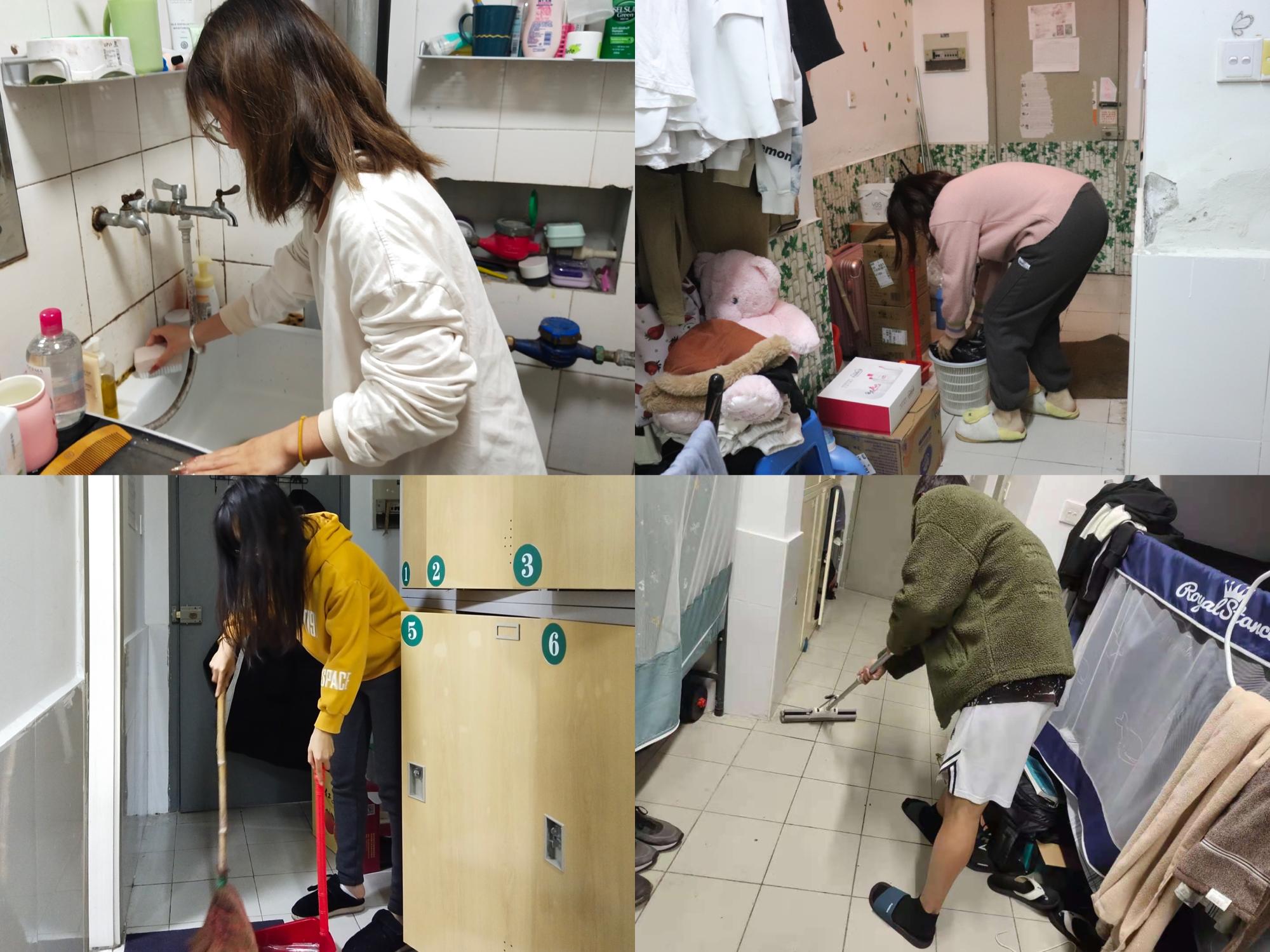 全体同学积极参与、自觉分工,认真完成床铺整理、垃圾清倒、地面清扫、厕所消毒等宿舍打扫工作,做到环境卫生不留死角,清洁消毒不留空白,寝室保持整洁、通风状态。同时,排查整改宿舍存在的安全隐患,提升卫生环境,筑牢安全防线。经过大扫除,宿舍环境更加安全有序、整洁敞亮。