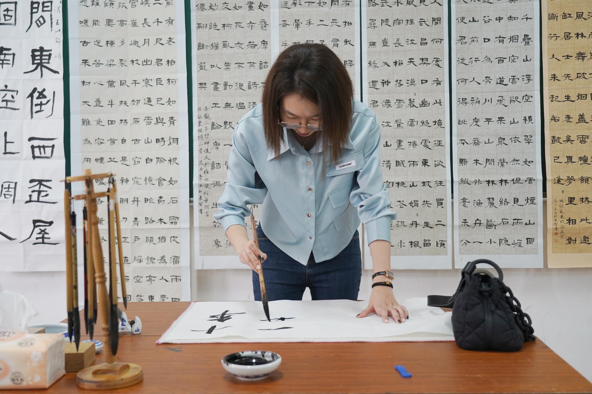 上午11时,返校日现场书法展在公司楼105教室展开。书法作为中国传统艺术,蕴含着深厚的历史文化。在返校之际,公司特别设置了“汲古书屋”供员工留下墨宝,这是经院人祝福母校与书法艺术的一次奇妙组合,超过50余人参观、参与了书法展览。