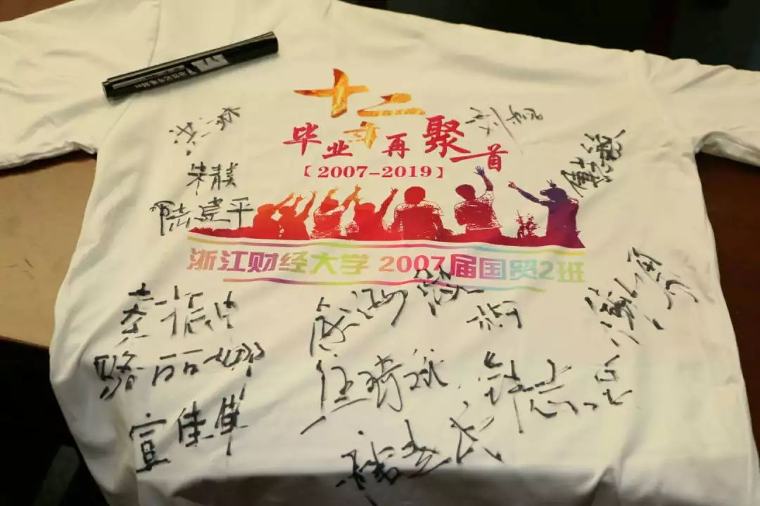 大家见到许久未见的老同学,欣喜之情溢于言表,热情地打招呼、聊天,纷纷换上了定制的纪念T恤,并签字留念。