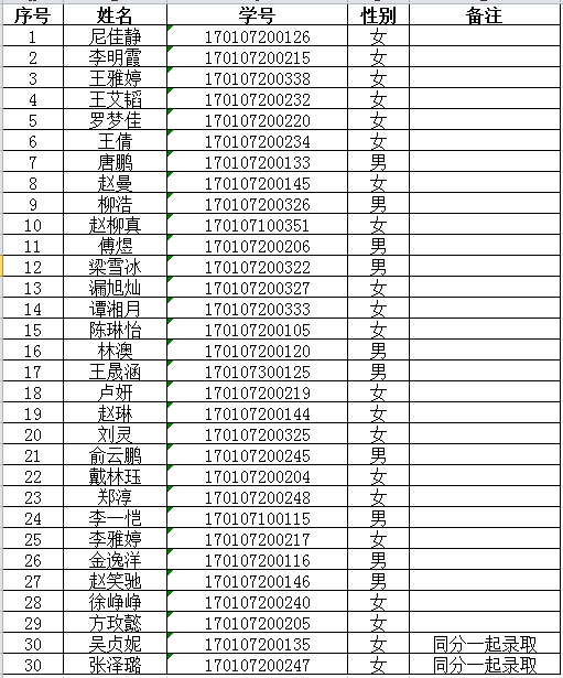 经公示无异议,现公布2017级国贸英华班录取名单如下: